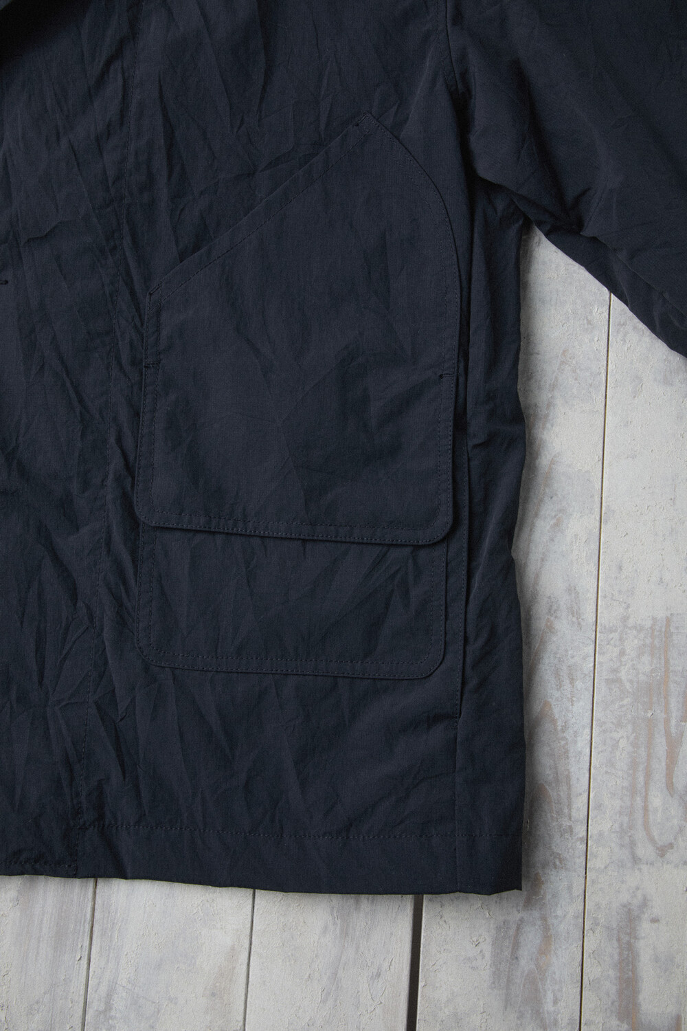 마이크로 립스탑 조직의 100% 나일론(UBC-NN875, 126g/sqm)을 사용해 바스락거리는 드라이한 터치와 자연스러운 크링클 텍스처가 살아 있으며, 여름철과 간절기에 셔츠처럼 편하게 걸치기 좋습니다.