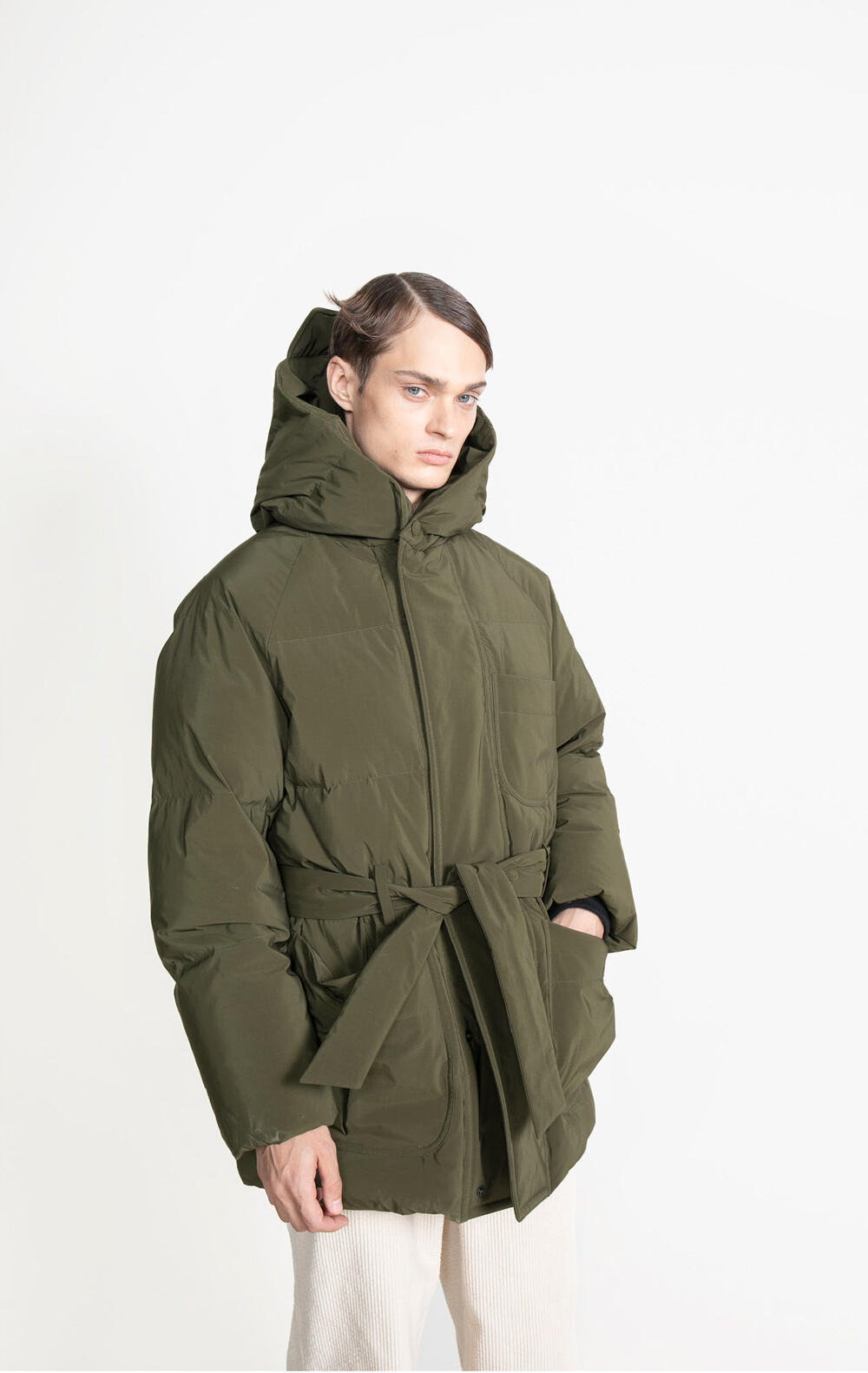 : NEW DUCK DOWN HOODED ROBE COAT_OLIVE
