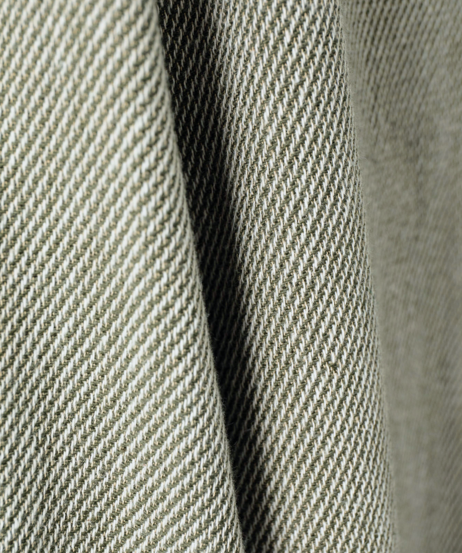 데님으로 유명한 오카야마에서 생산된 트윌 코튼 원단으로 제작되었습니다.
