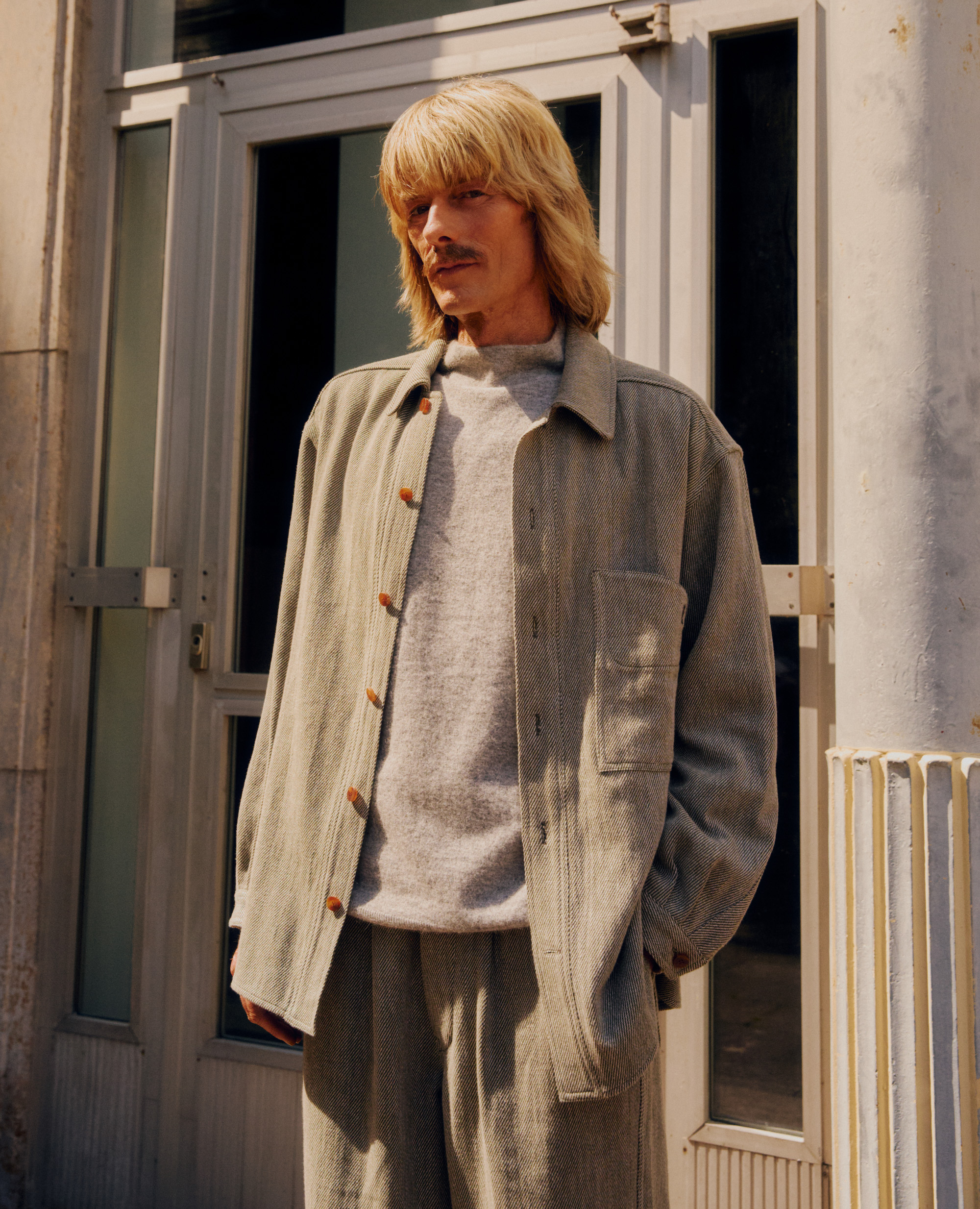 체스트 포켓은 대칭을 이루지 않고 비스듬한 곡선을 이루며, 부드럽게 굴려진 스티치라인이 더해져 옷의 뉘앙스를 이야기합니다.