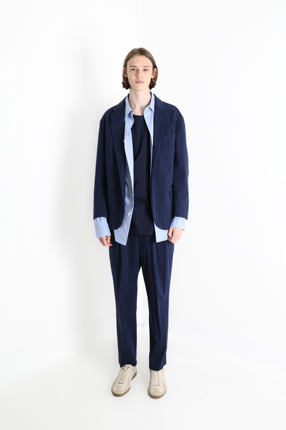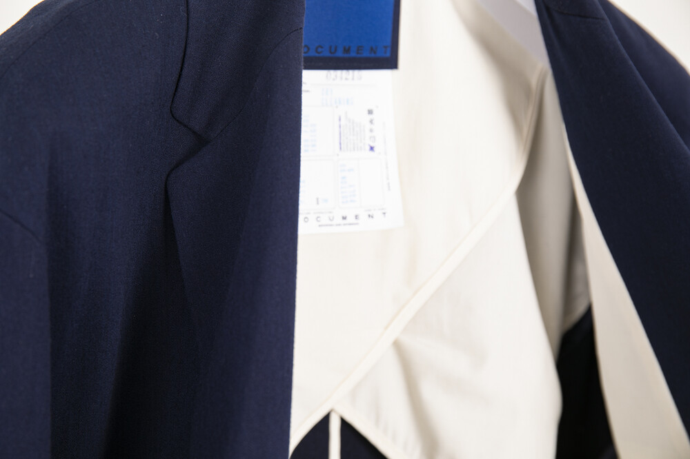 부드러운 어깨라인과 경쾌한 기장감에서 비롯된 여유로운 실루엣이 드러나며, 도큐먼트가 지향하는 자켓의 묘미를 보여줍니다.