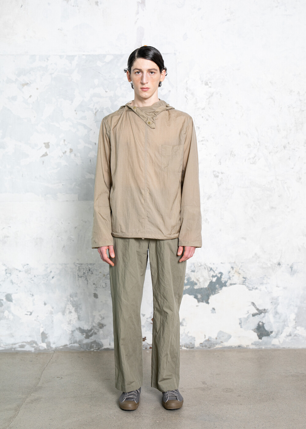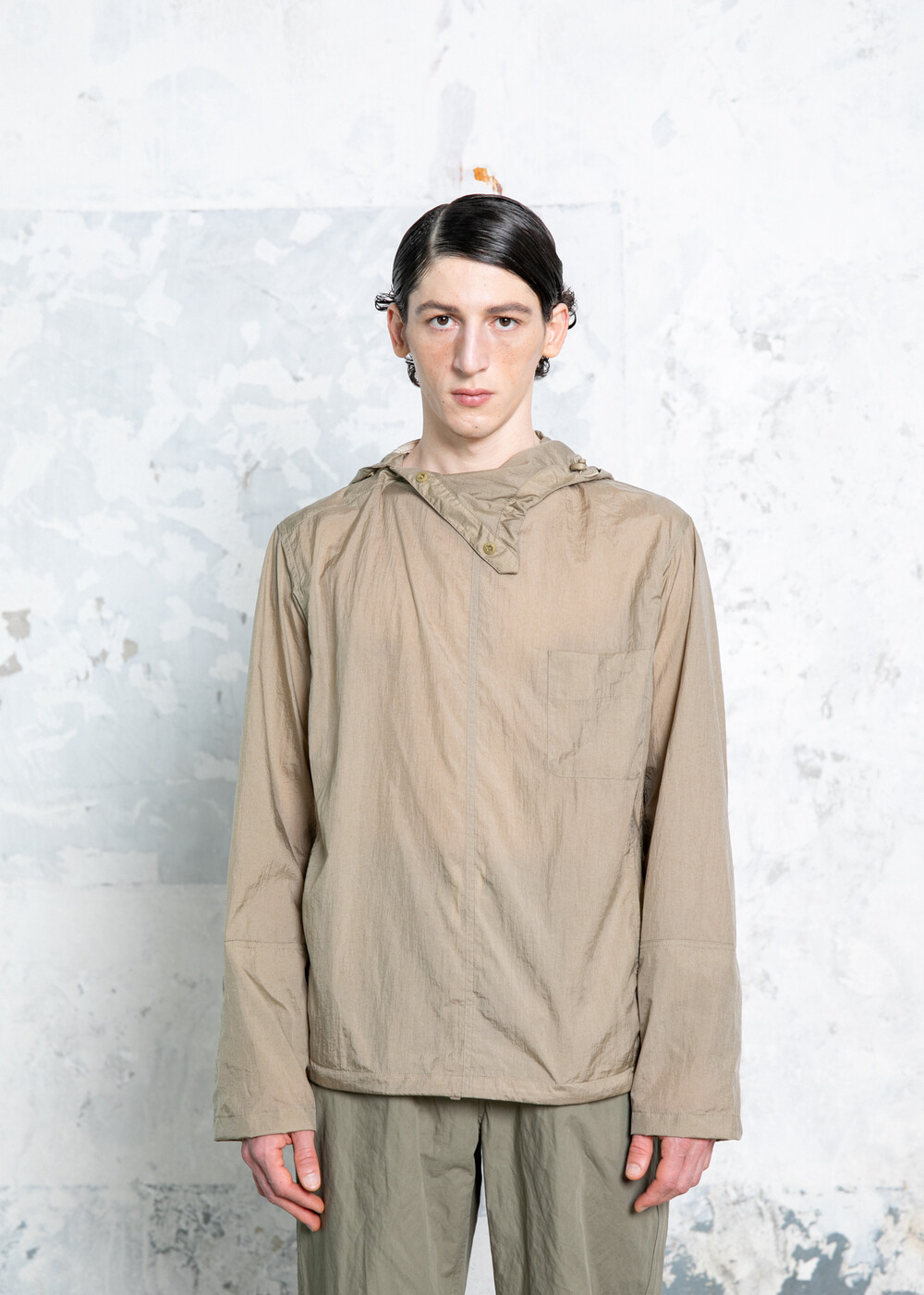NYLON HOODED SHIRTING JACKET_KHAKI