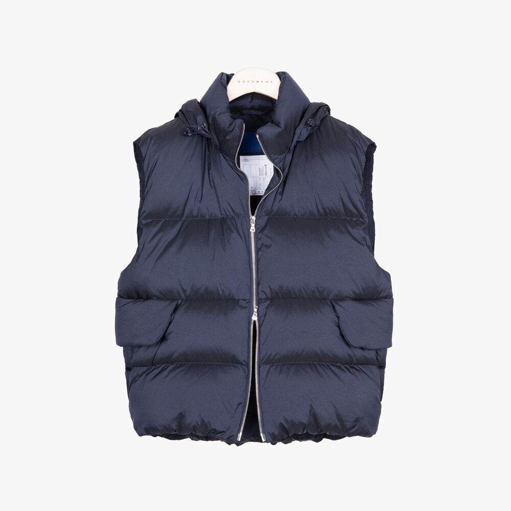 일본산 고밀도 나일론과 폴리에스터 원단으로 제작된 오버사이즈 다운 베스트입니다.겉감은 은은한 광택이 도는 나일론 소재로 생활 발수가 가능하며,안감은 다운프루프(Down Proof) 가공 처리로 충전재의 새어나옴을 최소화했습니다.