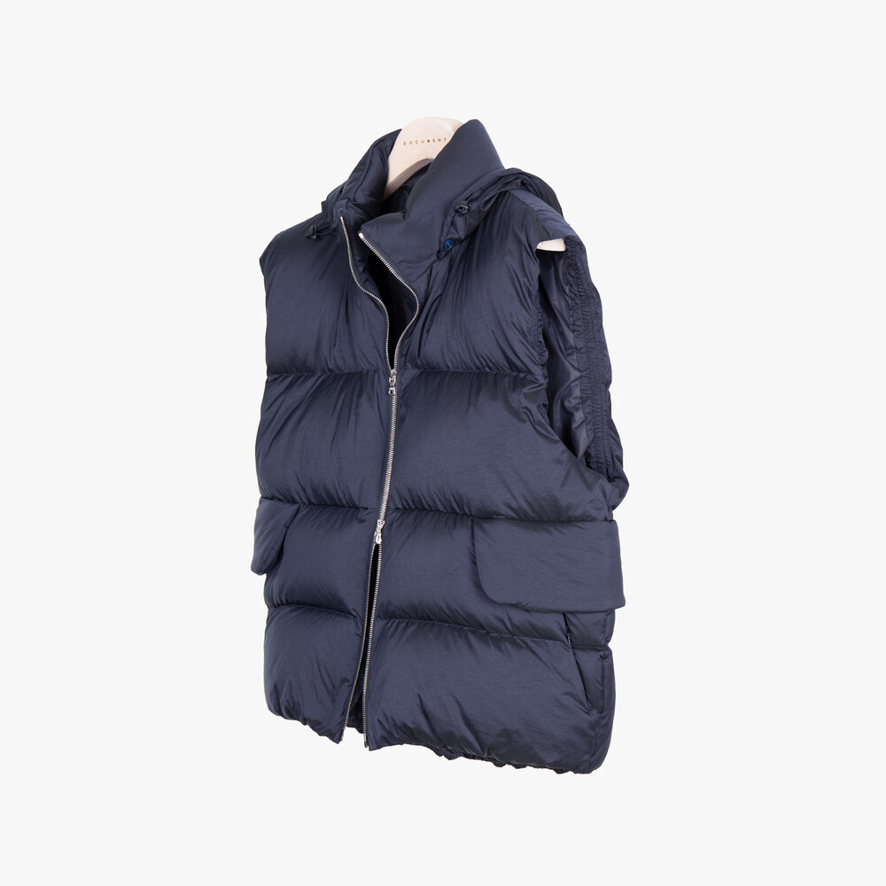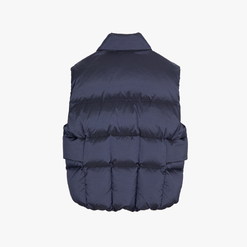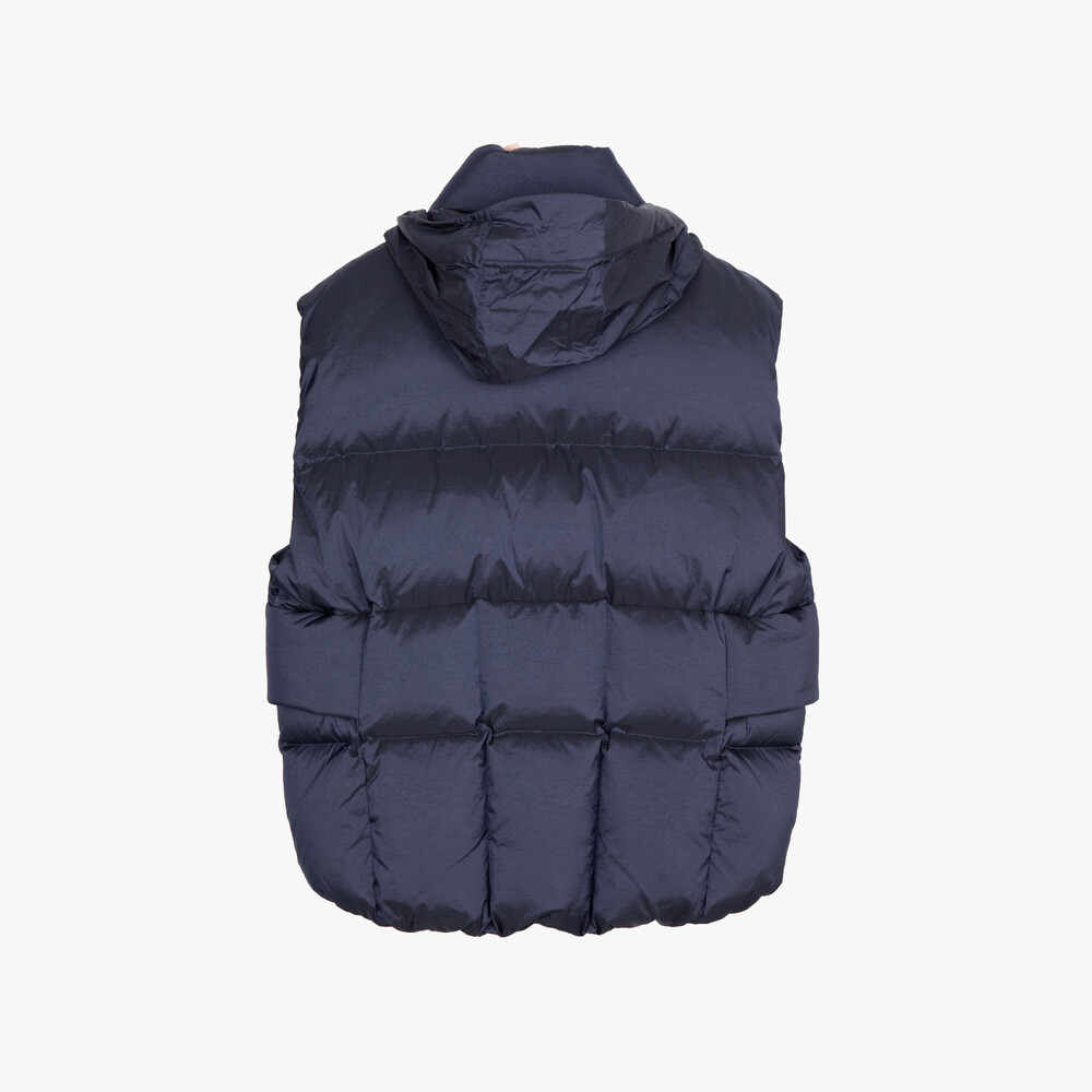 Crafted from Japanese high-density nylon and polyester fabrics,the OVERSIZED DOWN VEST embodies a voluminous yet balanced silhouette.