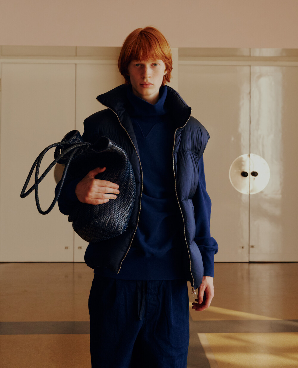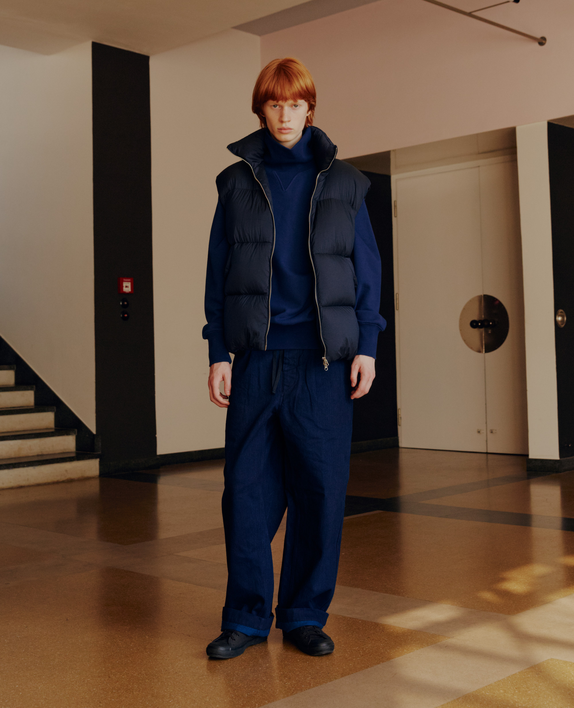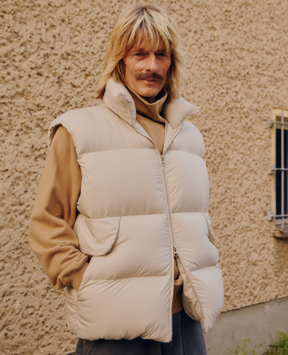 Crafted from Japanese high-density nylon and polyester fabrics,the OVERSIZED DOWN VEST embodies a voluminous yet balanced silhouette.