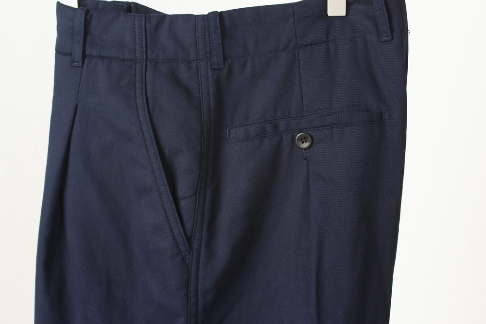 앞에 두개의 턱과 뒤에 한 개의 턱이 있어 착용시 일자로 곧게 뻗은 실루엣을 나타나도록 테일러드 된 제품입니다.