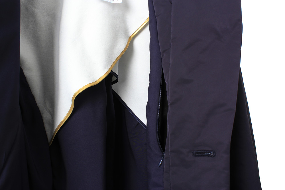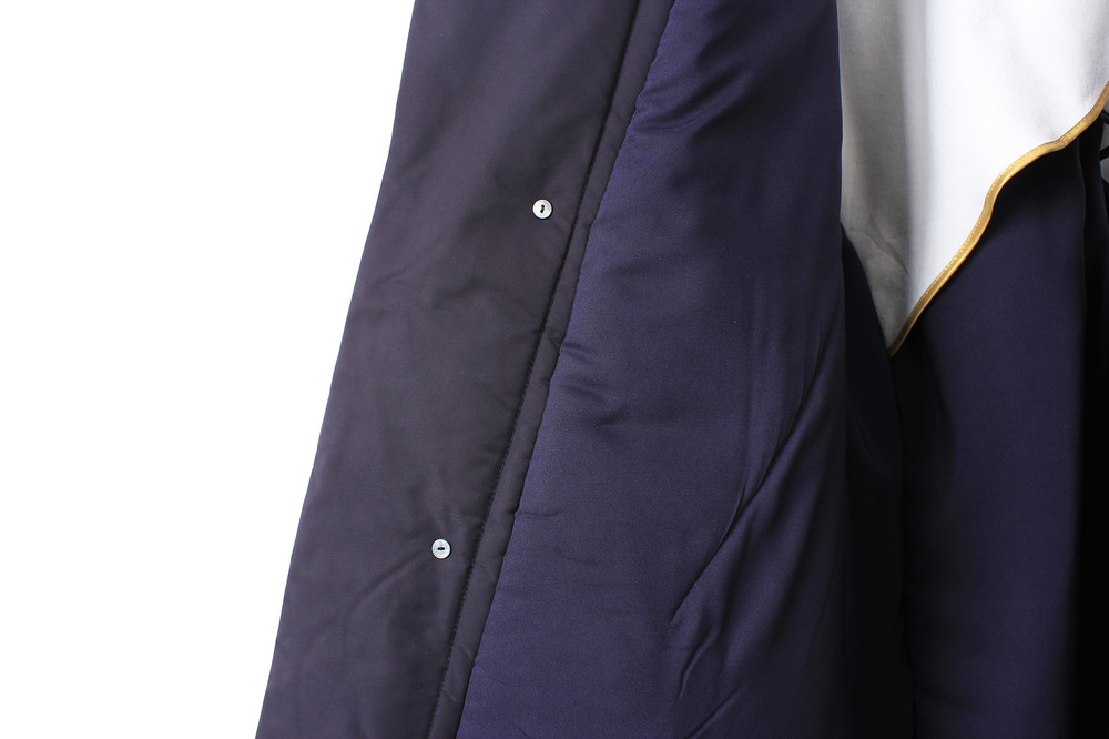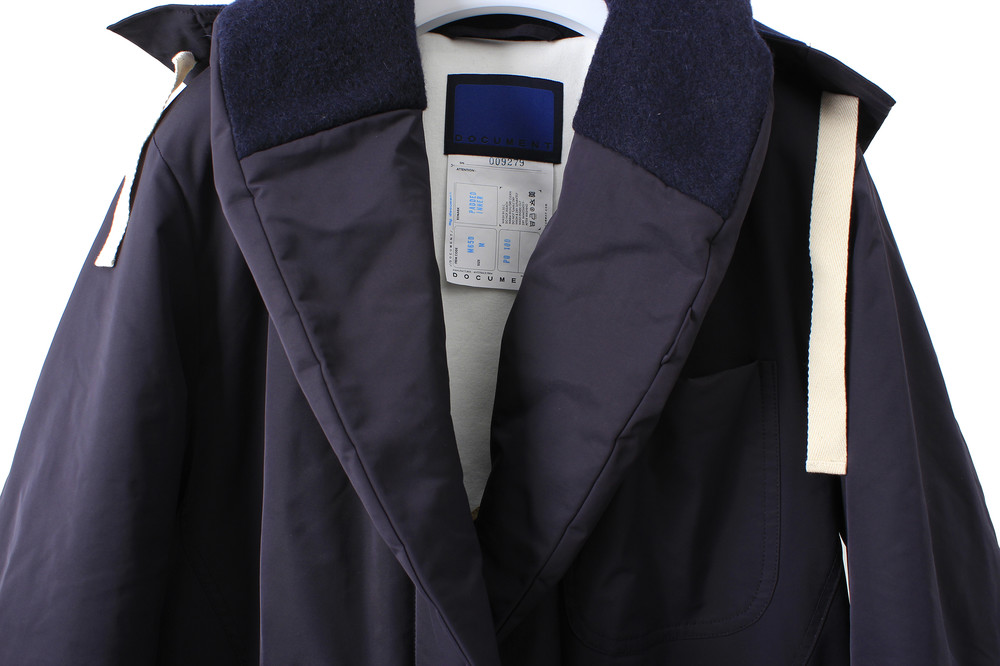 허리의 벨트는 도큐먼트의 다른 로브 코트와 동일하게 안쪽으로 나오게 되어 허리 라인은 유지한 채 채울수 있습니다.