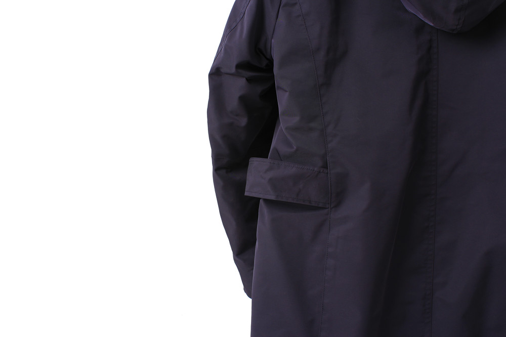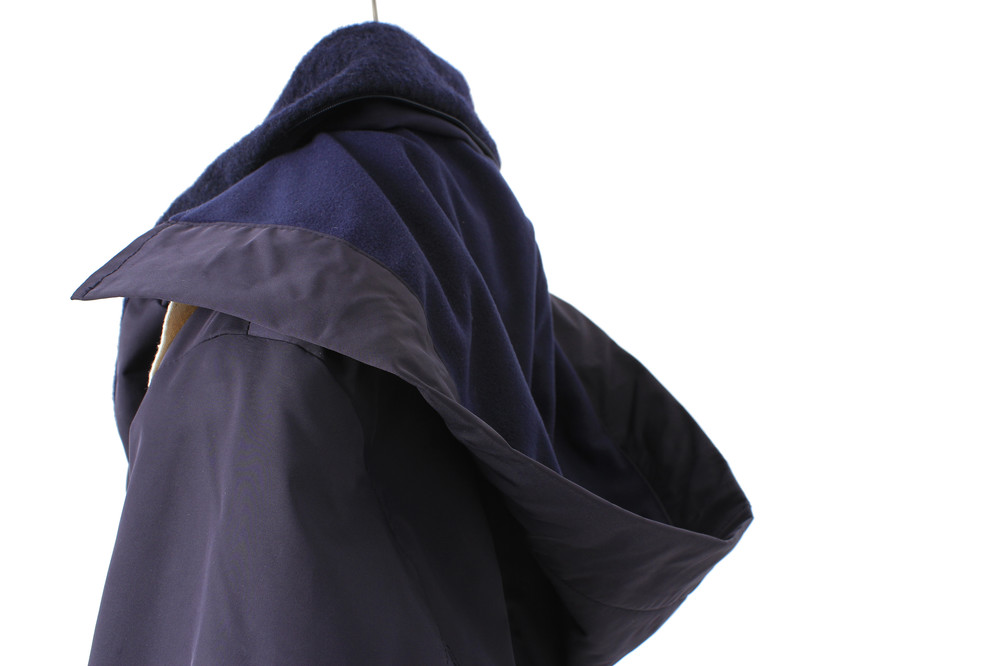 로브코트의 숄에리 넉넉한 공간안에는 후드가 내장 되어 있어서 눈, 비 등 예기치 않은 날씨에 대비 할 수 있으며,