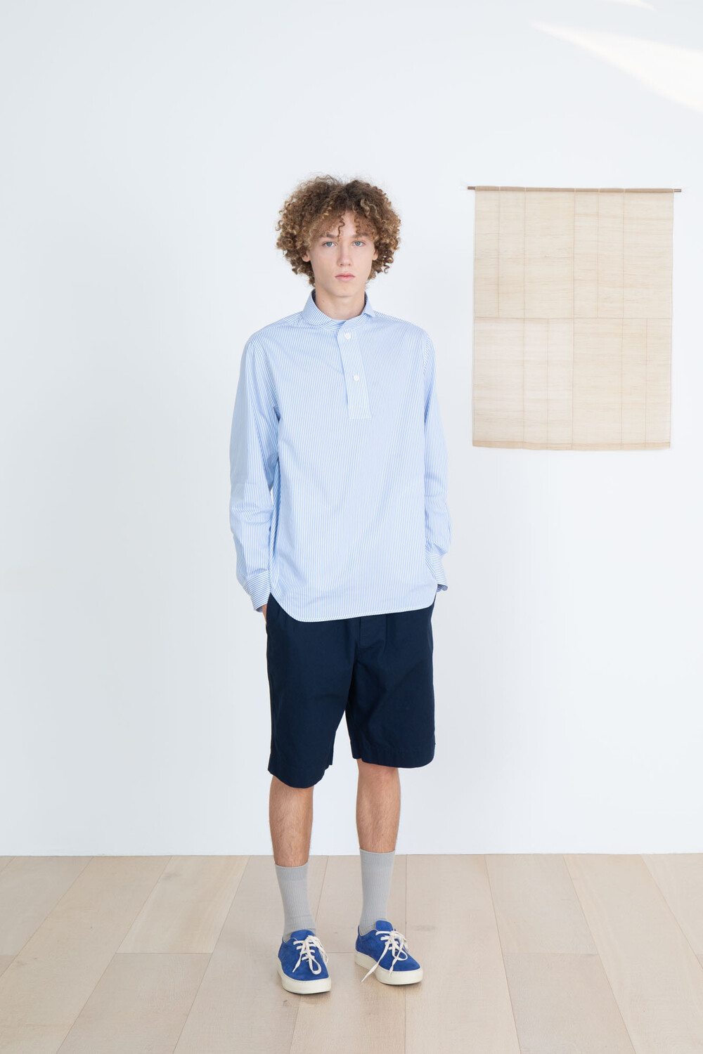 기존의 파자마쇼츠보다 긴 기장과 넉넉한 바지통을 가진 세미와이드 핏의 릴렉스한 실루엣으로 착용하실 수 있습니다.