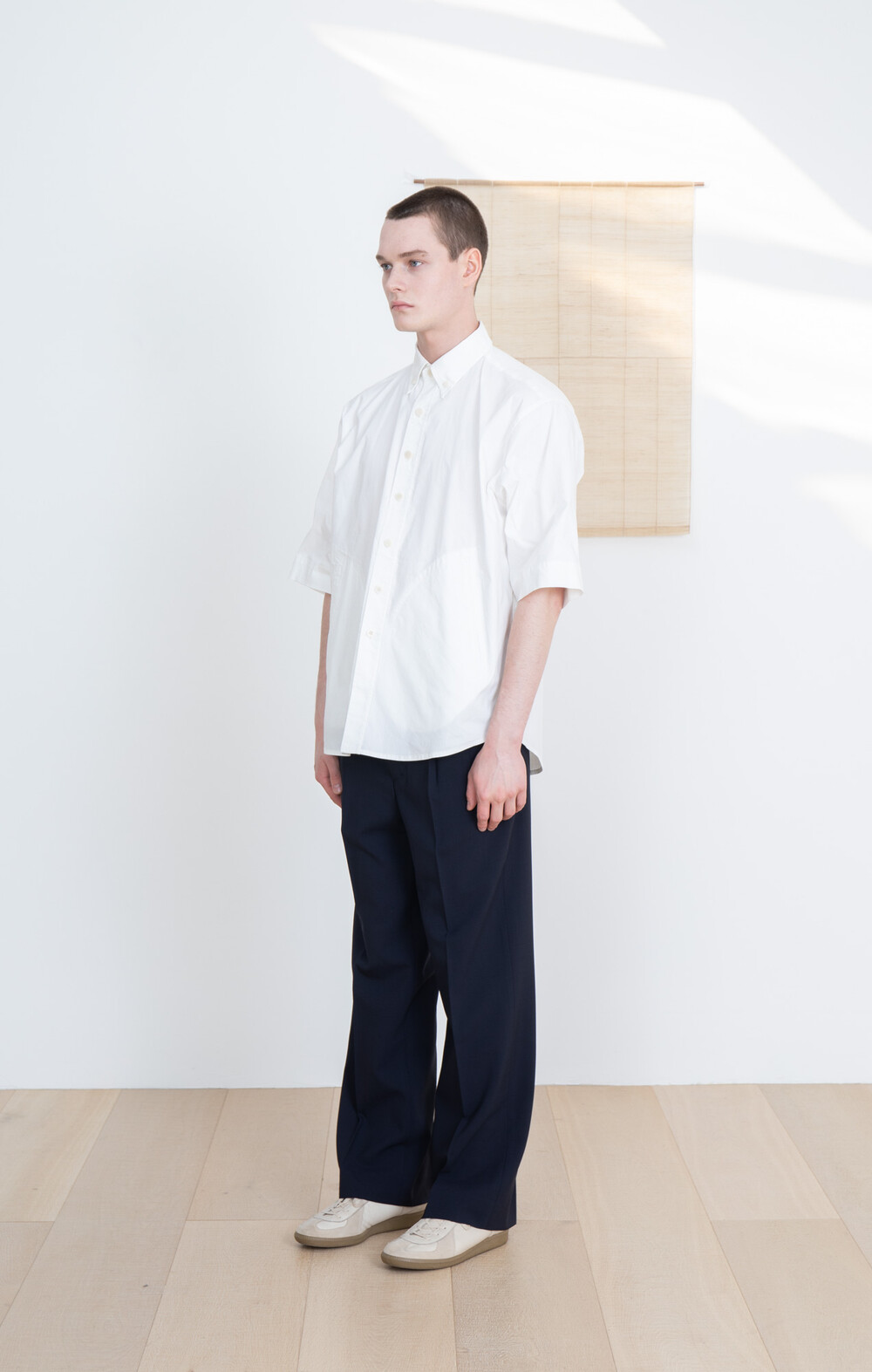전체적인 두 줄 스티치로 시접을 깔끔하게 마감 처리하였고 캐주얼 한 무드를 살렸습니다.