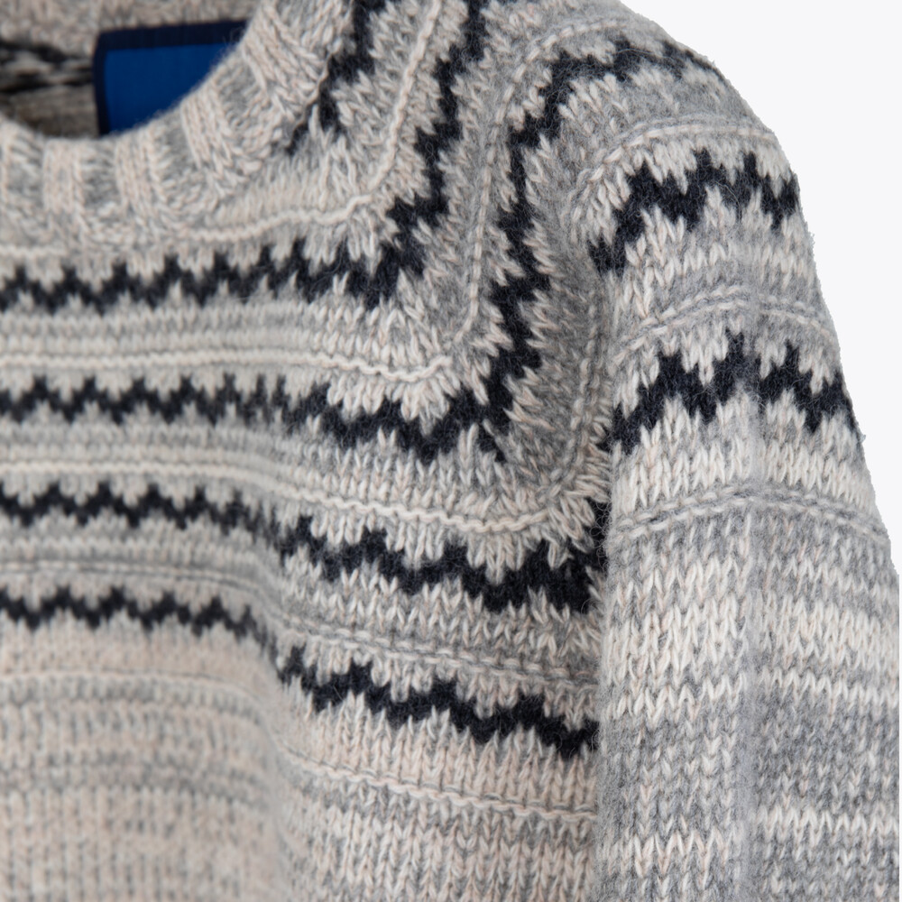 Crafted from authentic Shetland wool, this tweed sweater takes inspiration from traditional Nordic patterns of Finland and Northern Europe.