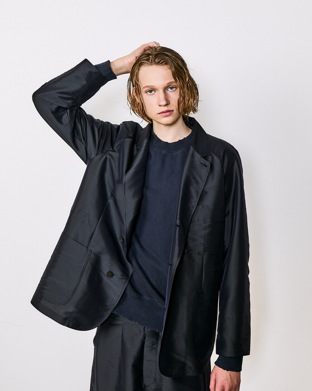 A lightweight expression of DOCUMENT’s quiet tailoring, reworked with a softer and more fluid balance.The raglan sleeve softens the shoulder line for ease and comfort, while the relaxed silhouette creates a natural and understated presence.