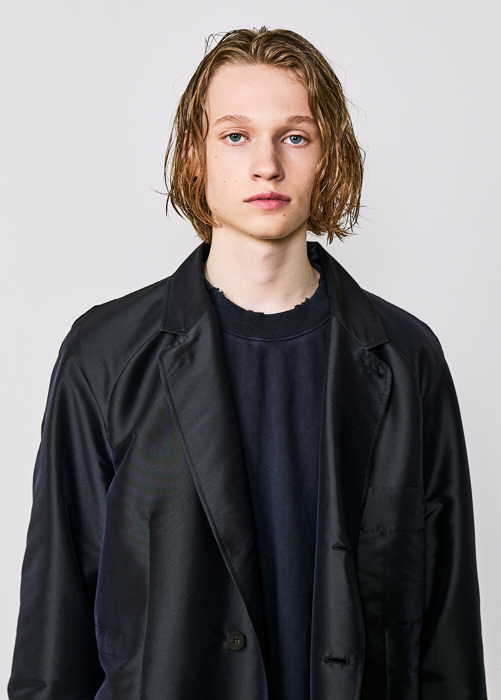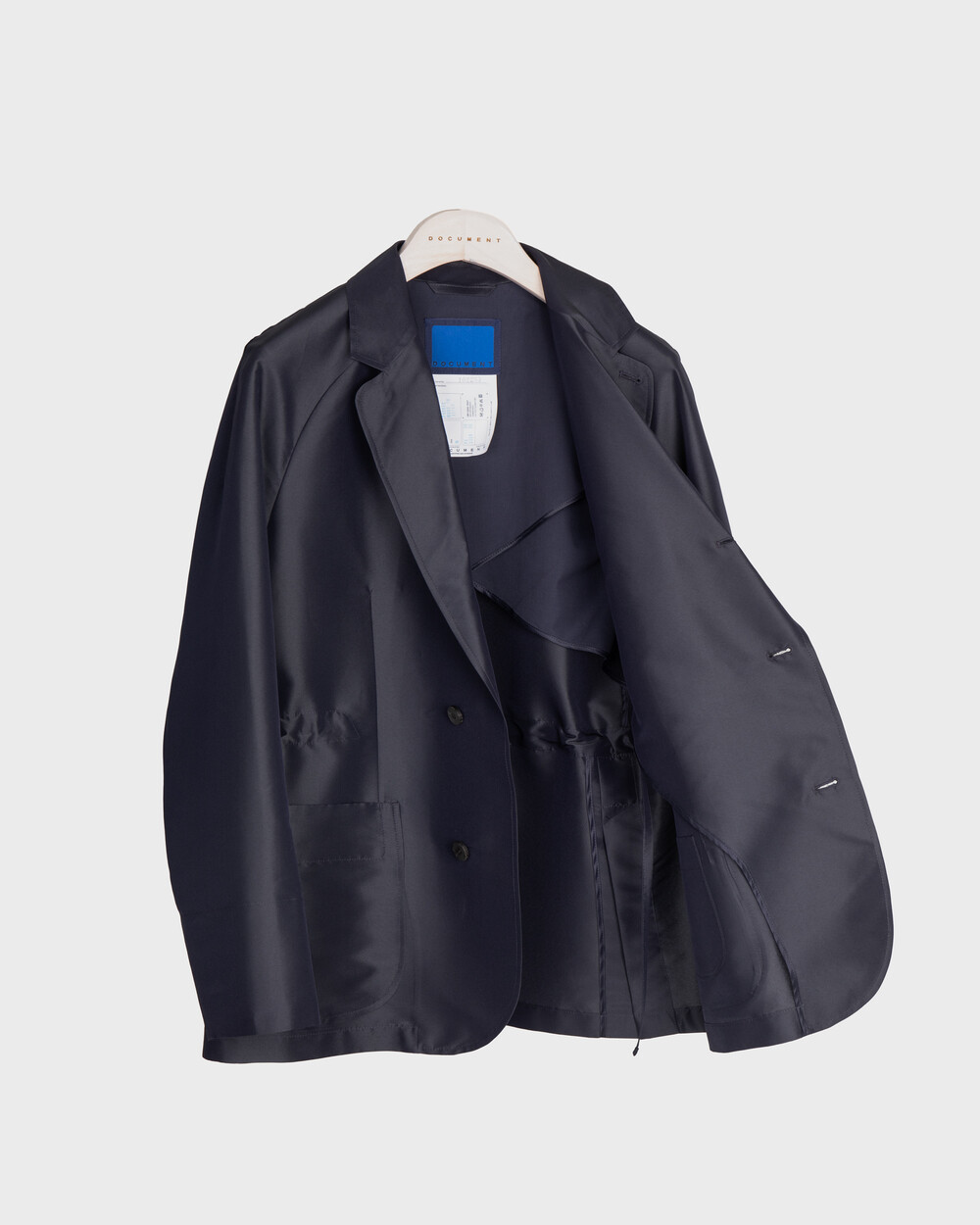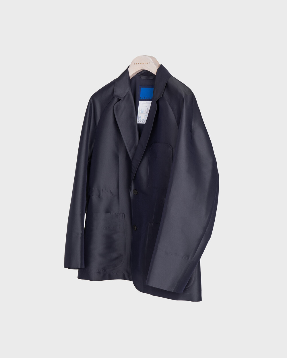 도큐먼트의 조용한 테일러링 감각을 보다 가볍고 유연한 방식으로 풀어낸 재킷입니다.래글런 소매가 어깨선을 부드럽게 감싸 편안한 착용감을 전하며, 릴렉스된 실루엣이 자연스럽고 여유로운 인상을 만들어냅니다.
