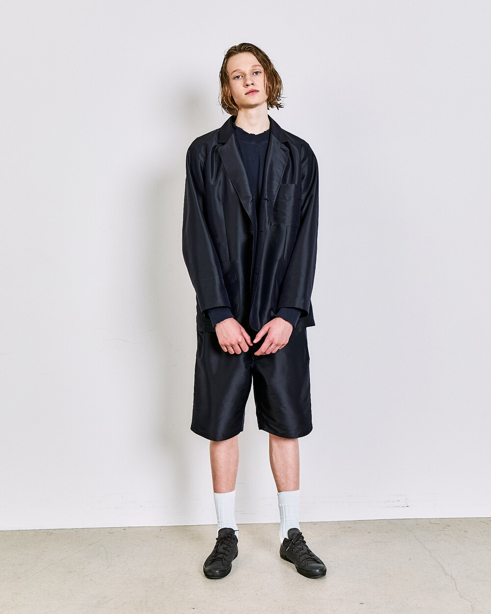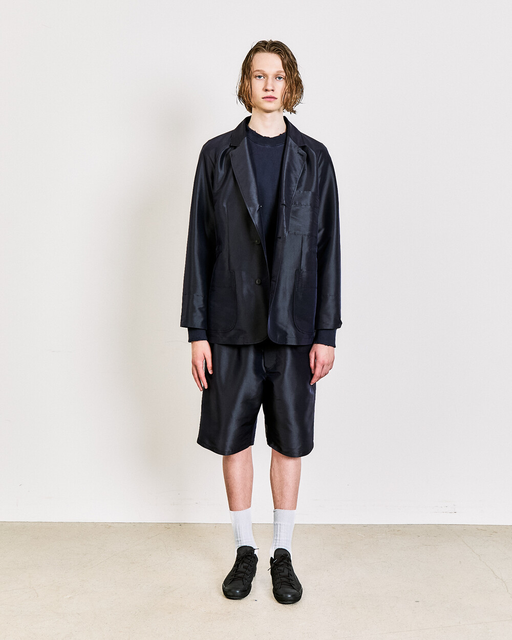 동일 원단으로 제작된 SILK BLEND SET UP TUCKED SHORTS 또는 팬츠와 셋업으로 착용할 수 있습니다.100 사이즈 기준 M 사이즈를 권장드립니다.