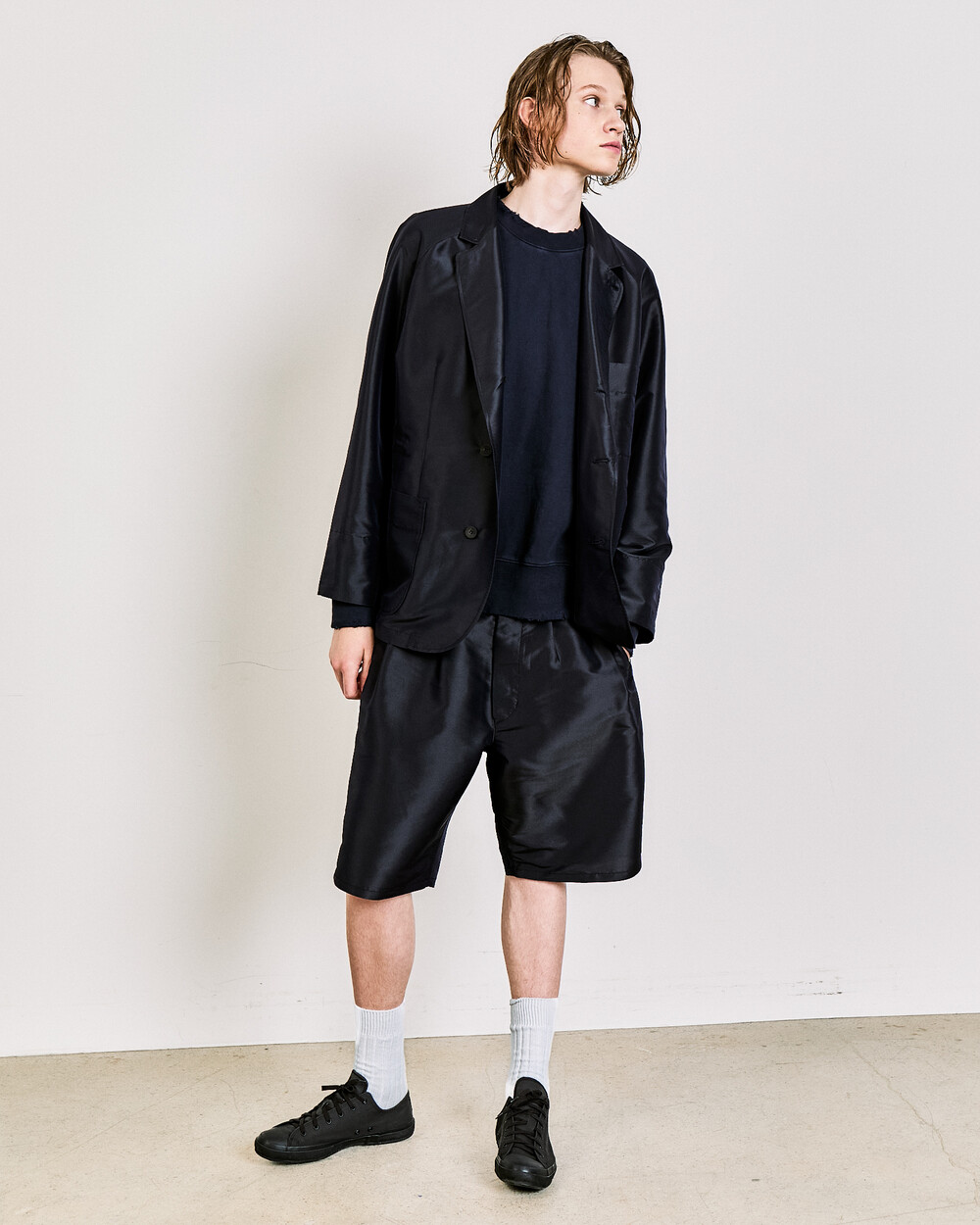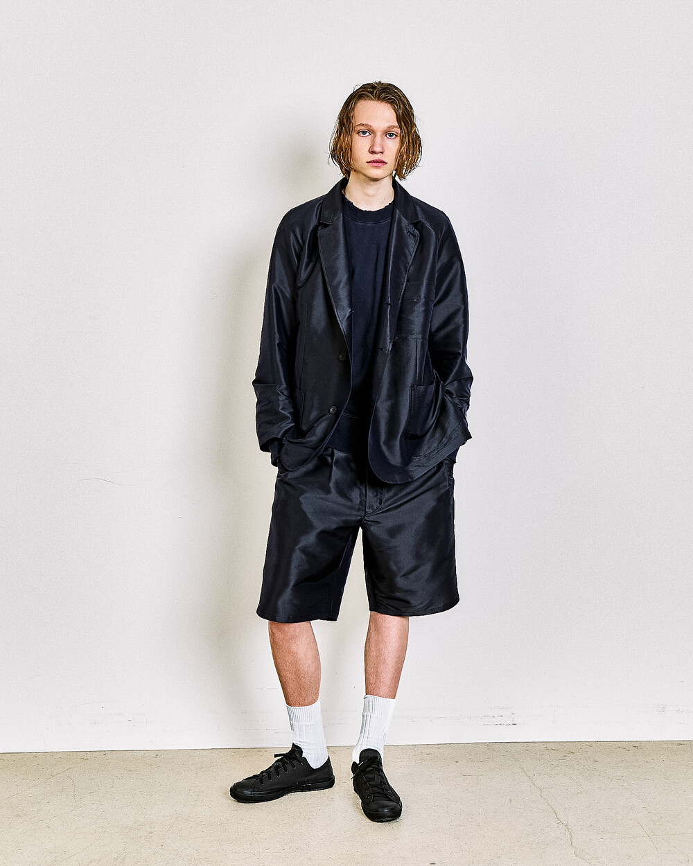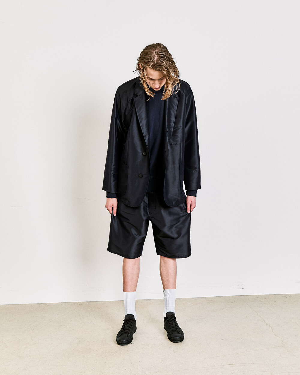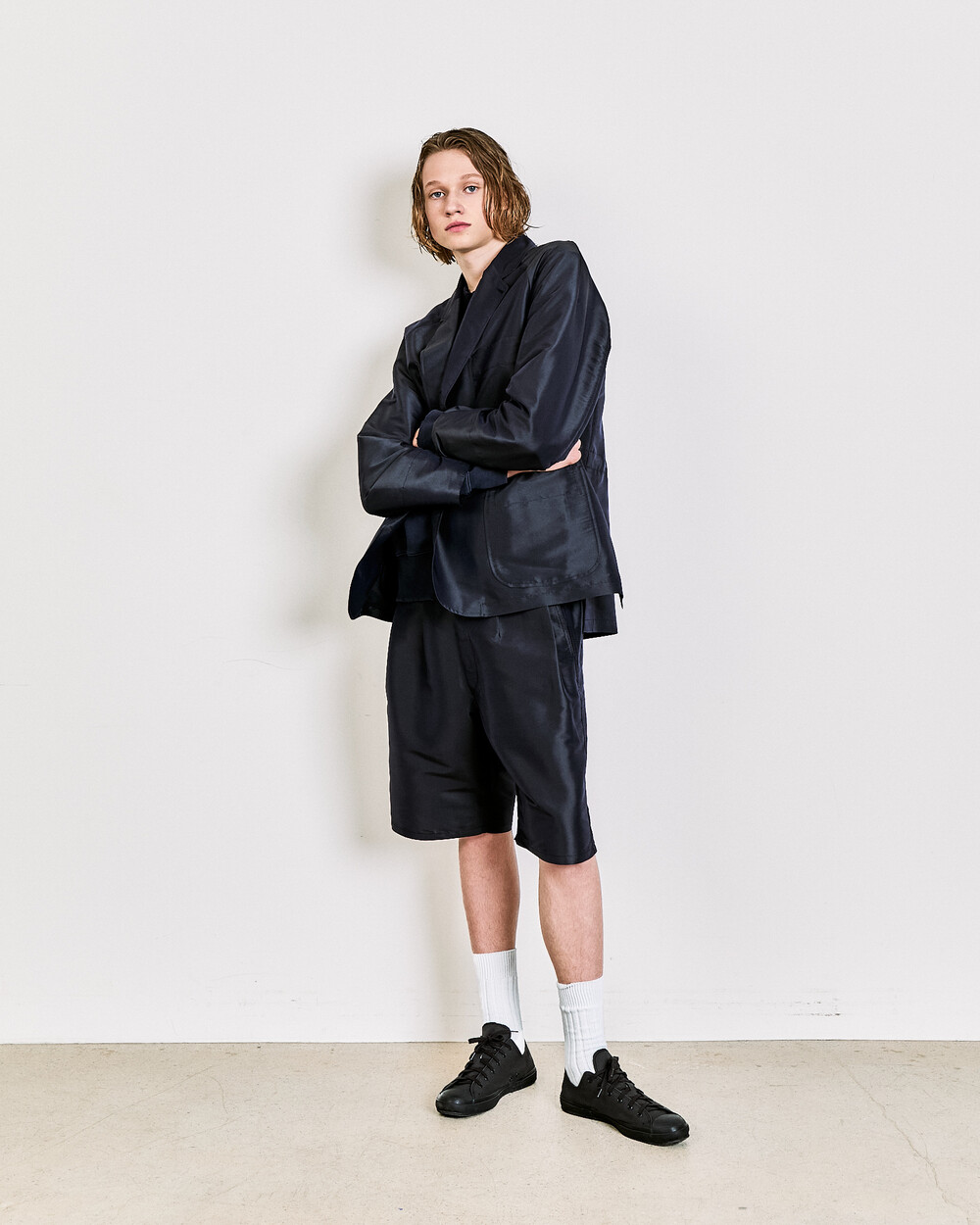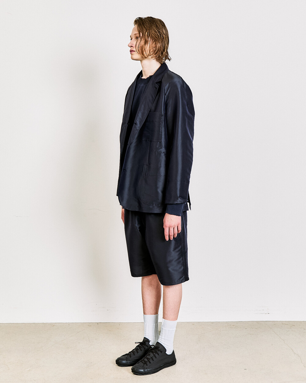 A relaxed short defined by two front pleats and a wide fit, offering an easy yet elegant balance.The knee-length cut and softly extended silhouette create a calm, comfortable impression, reworking a familiar short shape through DOCUMENT’s refined proportions.