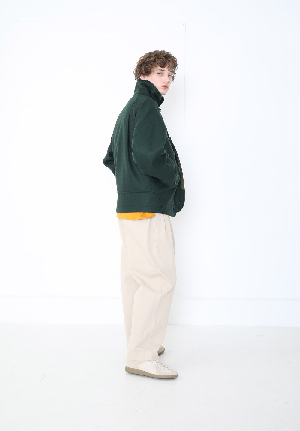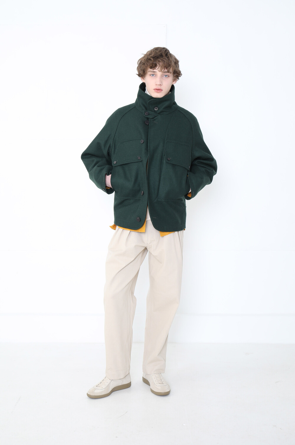 영국에서 생산된 울 멜톤 원단으로 만들어졌으며, 멜톤 원단 특유의 고시감으로 실루엣에 볼륨감을 더해줍니다.
