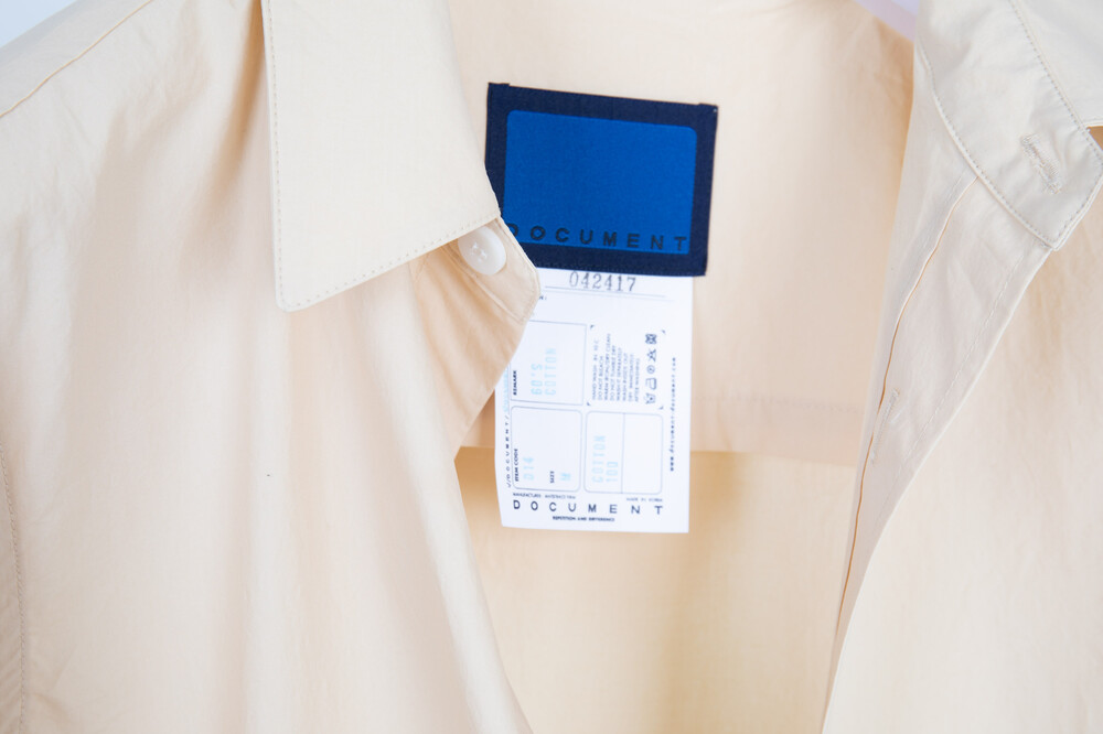 도큐먼트 셔츠 실루엣의 특징인 드롭되는 어깨와 등품 안쪽의 숨어있는 주름으로 활동성을 더하였습니다.