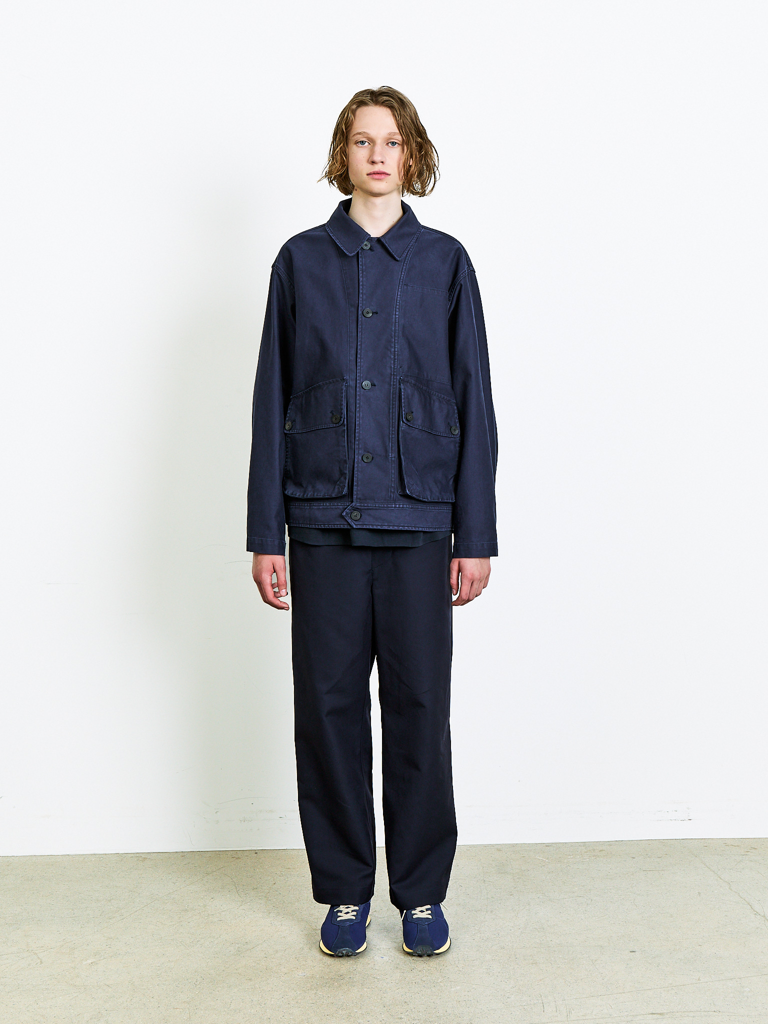 여기에 스톤 워싱을 더해 깊이 있는 색감과 자연스럽게 바랜 듯한 표면의 변화를 표현했습니다. 착용과 시간의 흐름에 따라 더욱 풍부한 경년 변화가 나타나며, 익숙한 형태 안에서 소재와 표면의 인상을 새롭게 보여주는 빅 포켓 재킷입니다.