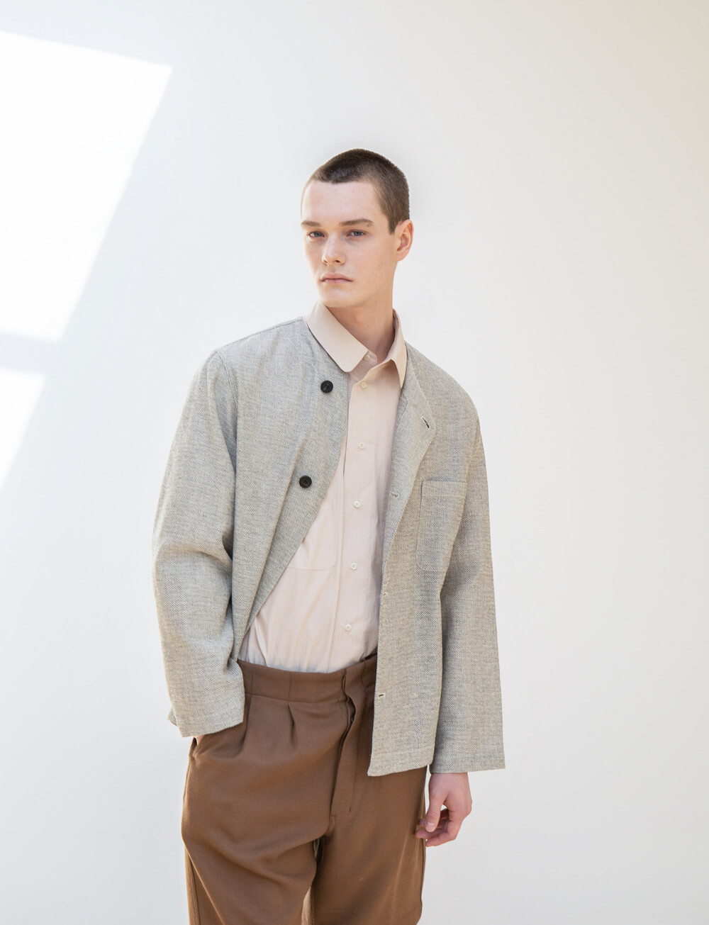 홑겹 자켓인 데다가 가벼운 원단 특성이 어우러져, 걸쳤지만 걸치지 않은 듯한 무게감을 선사합니다.