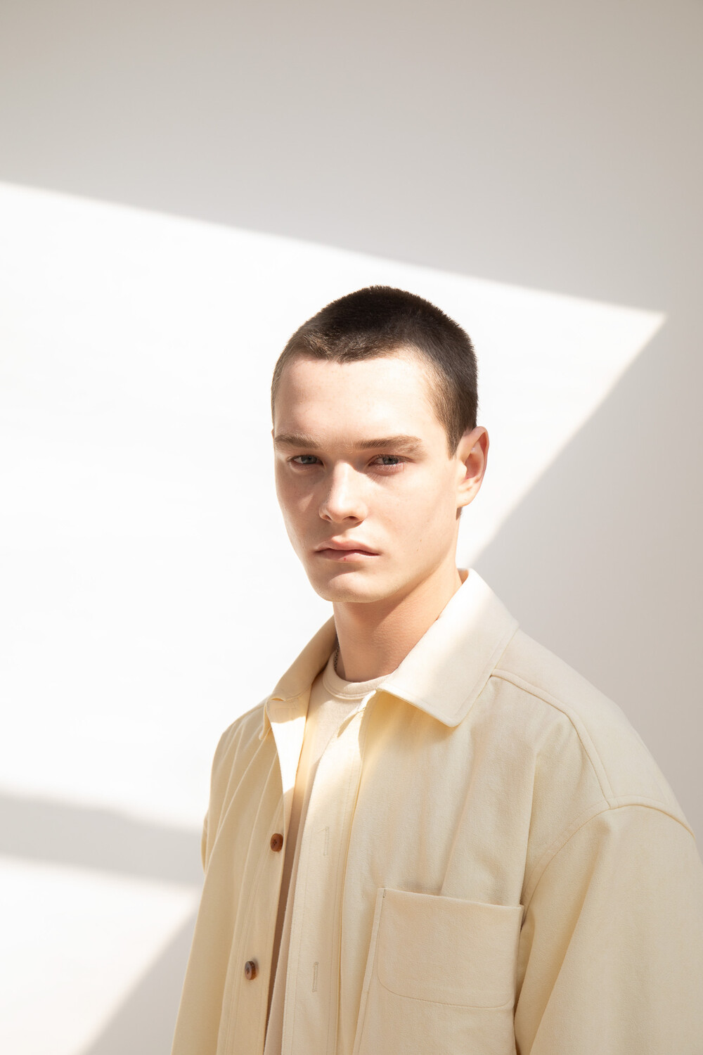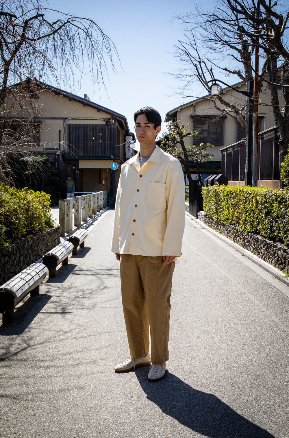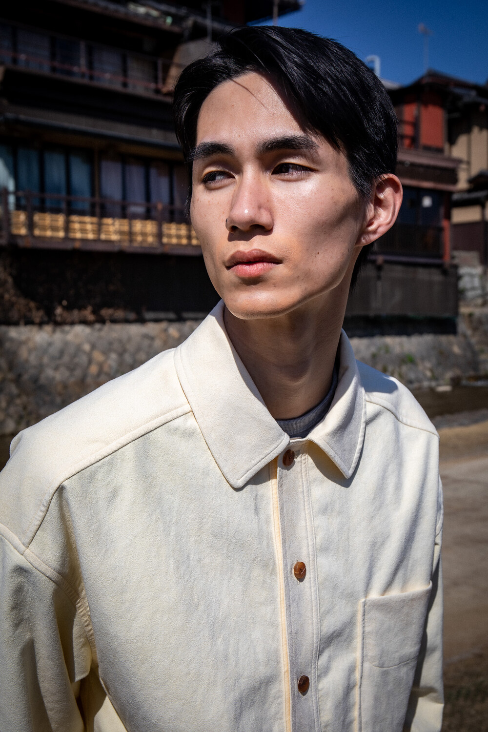 시각적 쾌감을 불러일으키는 컬러 스웨이드가 매력적인 SHITRING JACKET 의 또 다른 컬러 바세린색상 입니다.