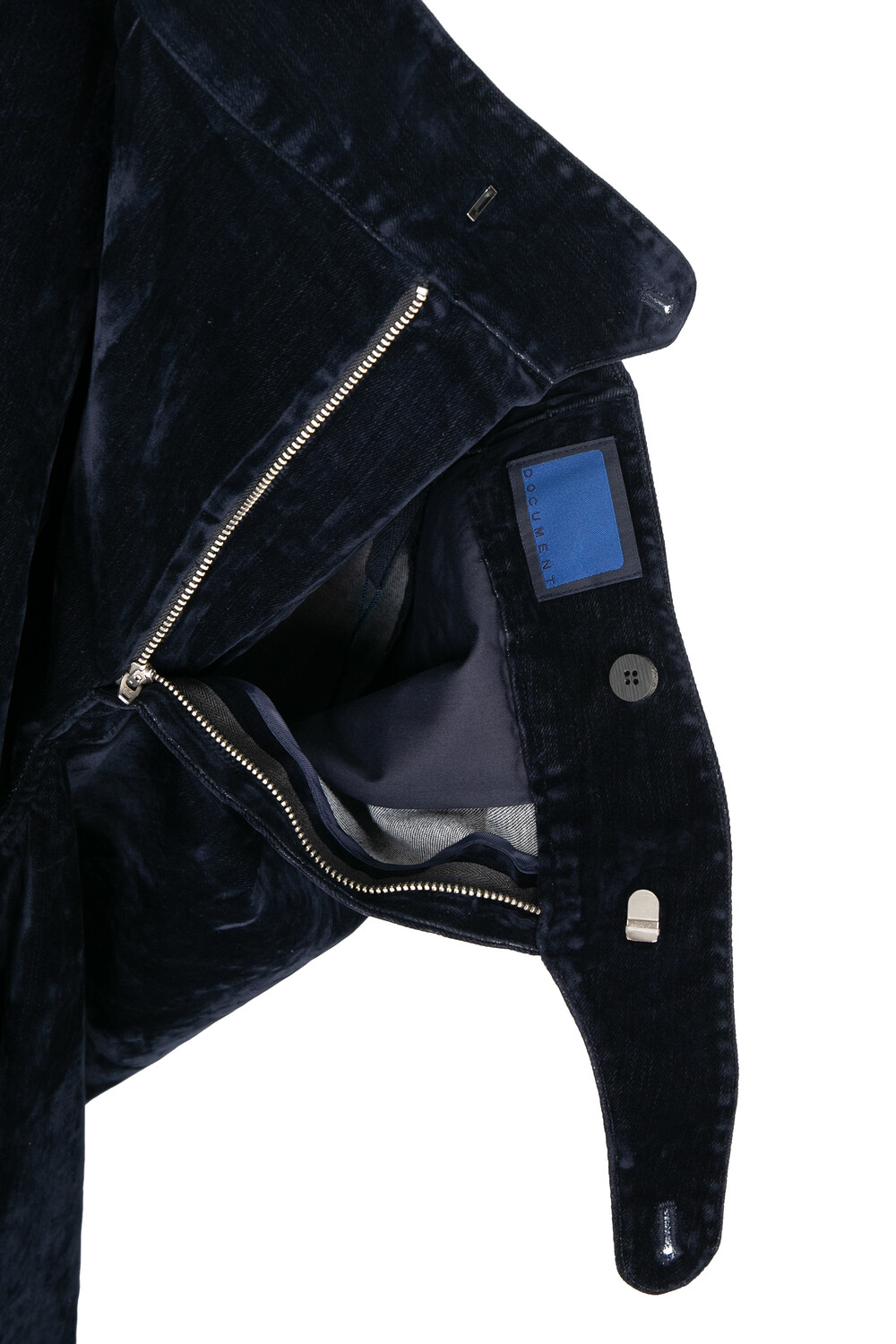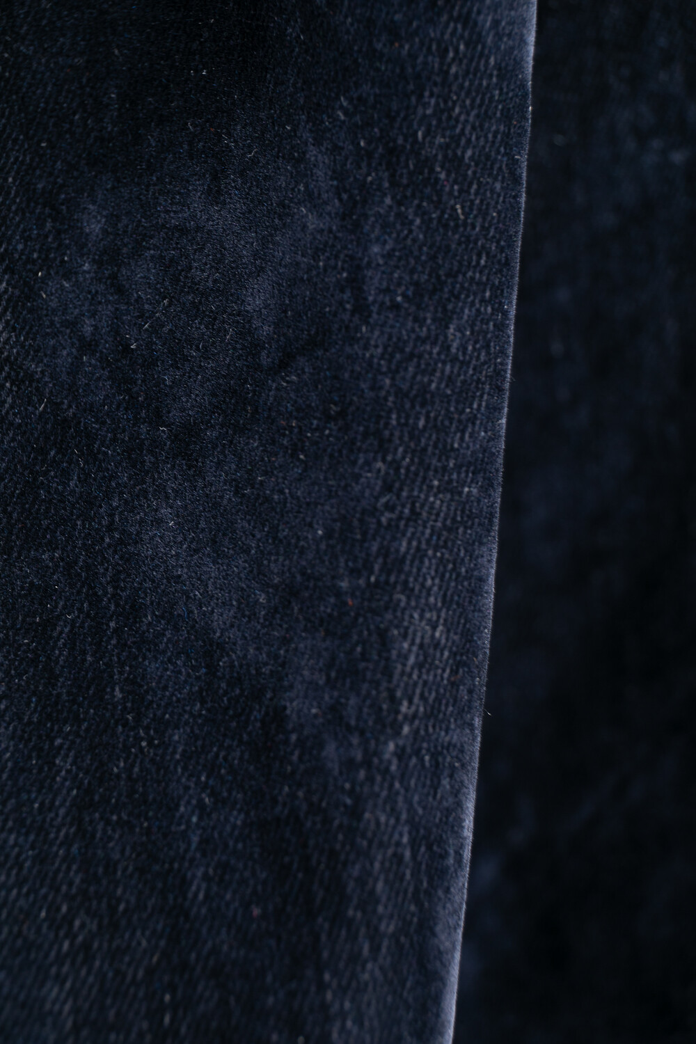 이태리에서 제작된 원단으로 벨벳이 주는 부드러운 터치감과 데님 특유의 표면이 어우러져 제품의 고유한 매력을 보여줍니다.