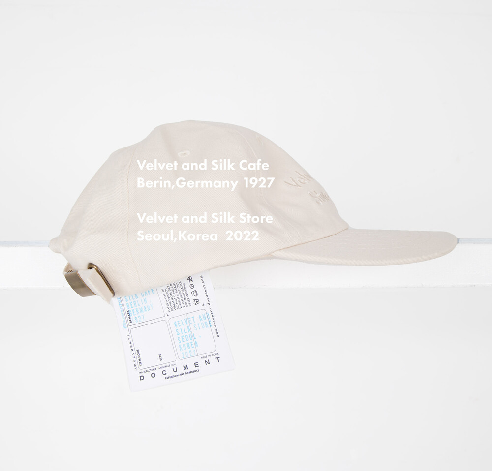 모자 전면에 Velvet and Silk Store 2022 타이포그라피가 새겨져 있는 것이 특징입니다.