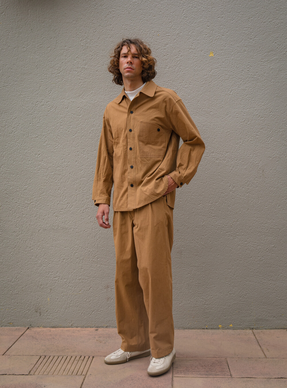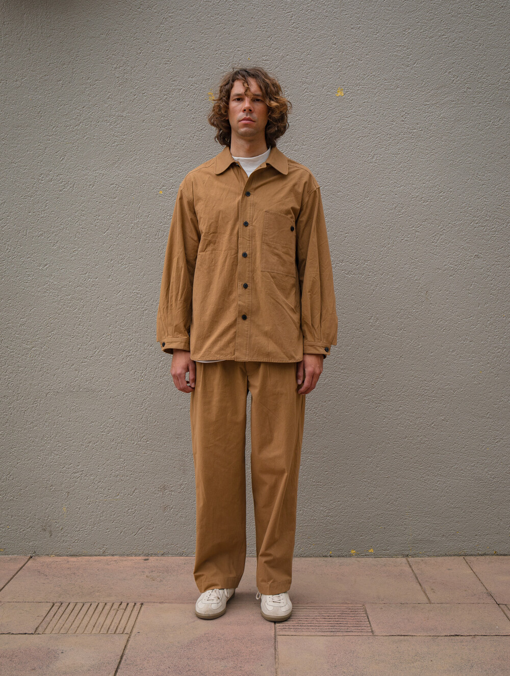 동일 원단으로 제작된 VINTAGE COTTON WIDE TUCKED TROUSERS 와 셋업으로 즐기실 수 있습니다.