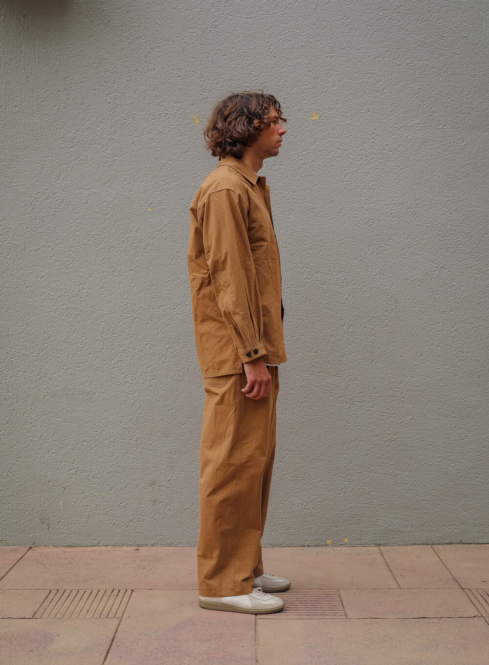 VINTAGE COTTON WIDE TUCKED TROUSERS_BROWN