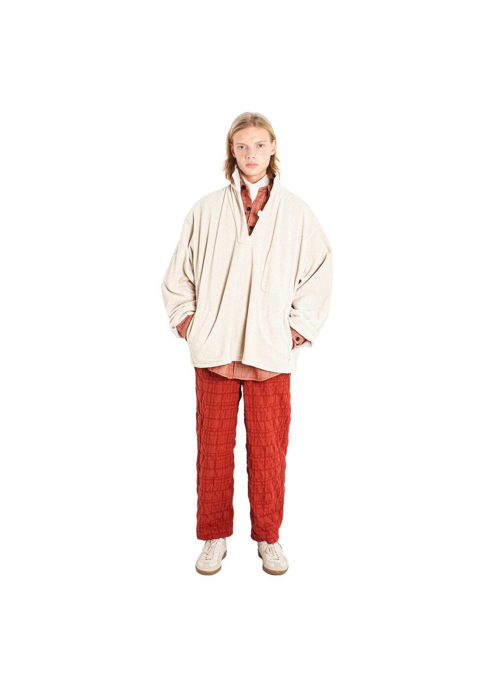 울과 코튼의 축률 차이로 드러나는 요철이 생기는 질감이 매력적인 제품입니다.