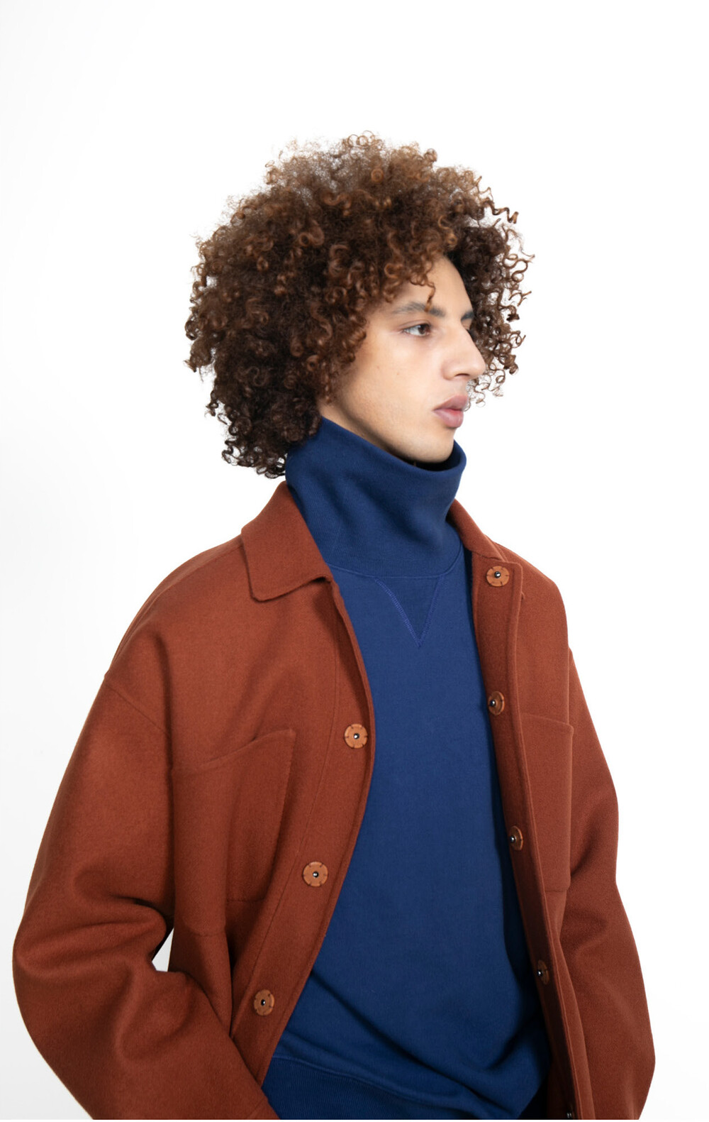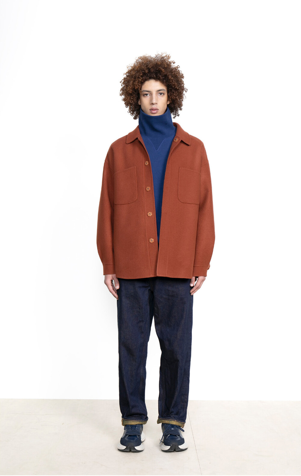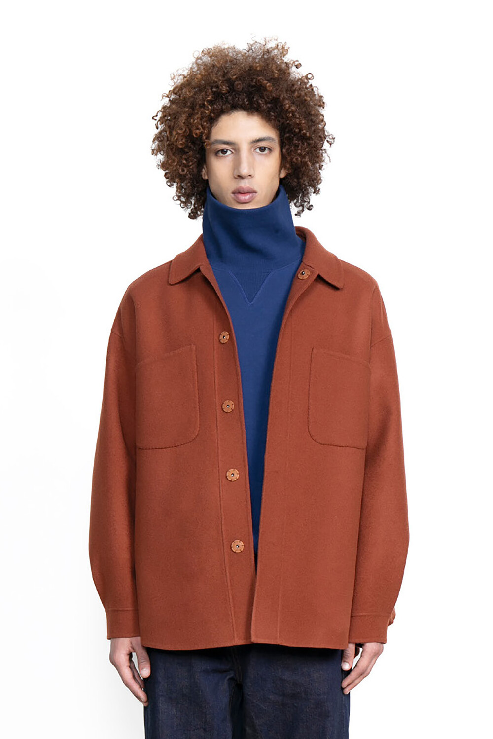 WOOL MELTON HANDMADE SHIRTING JACKET_BRICK