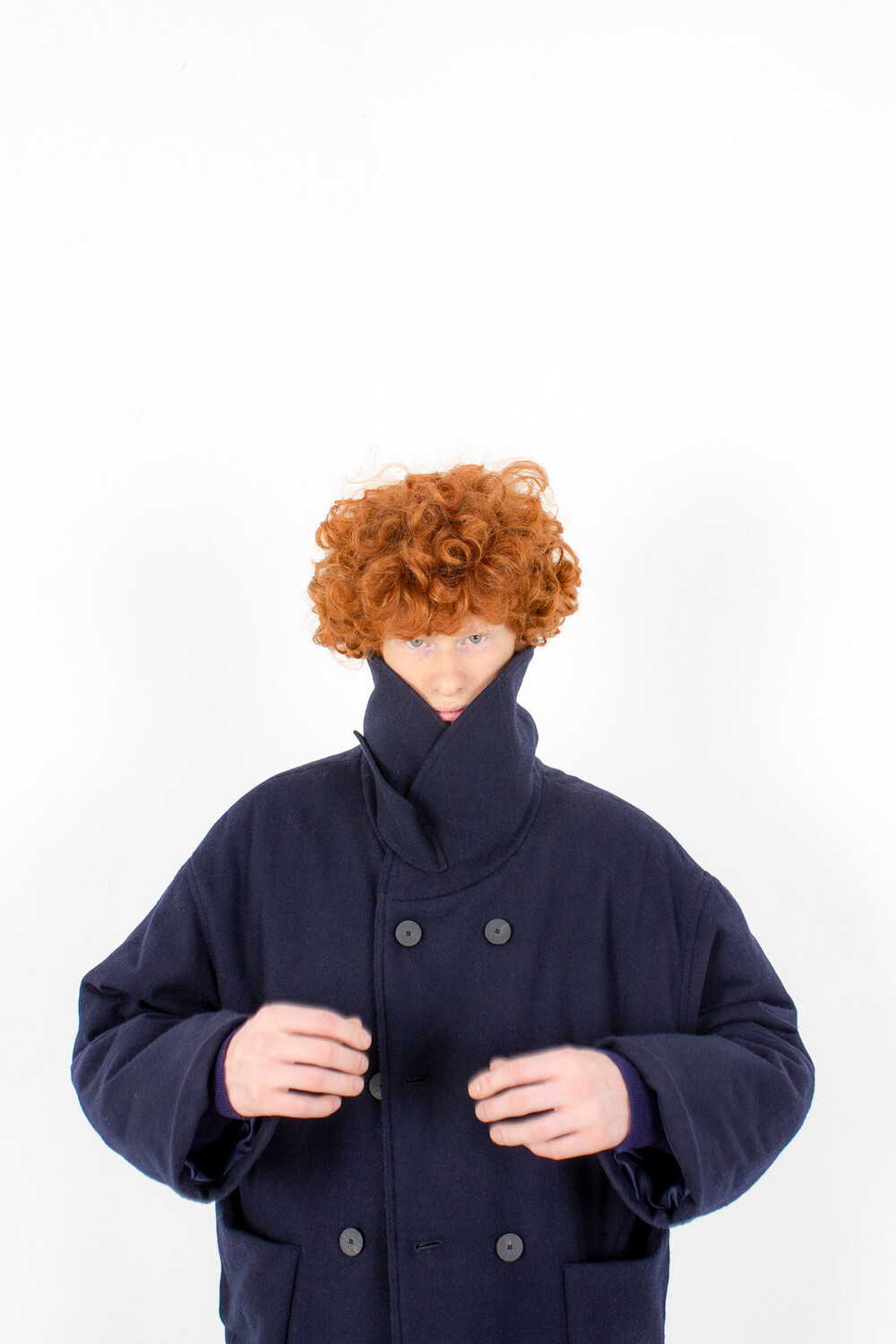 넉넉한 사이즈감의 패딩 피코트를 기존보다 더욱 풍성한 실루엣으로 즐기실 수 있습니다.