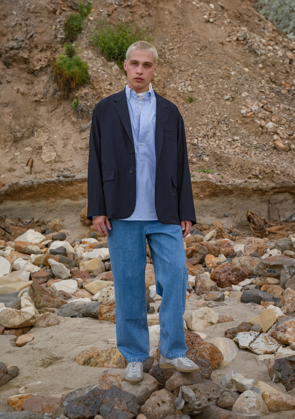 기존의 WOOL SET-UP JACKET에서 편안하고 여유로운 실루엣으로 변형하여 제작된 블레이져입니다.