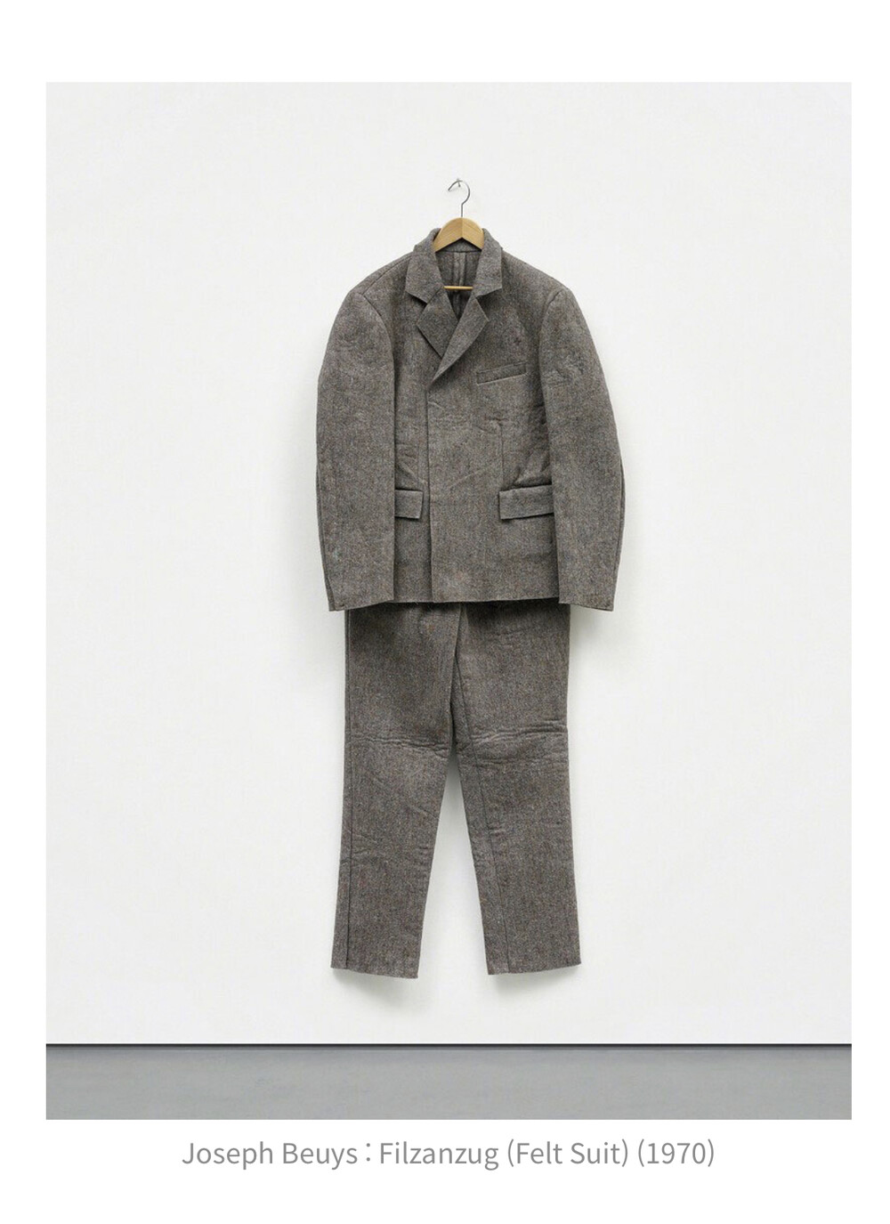 며칠이 지난 후에야 깨어난 요셉 보이스는 그 실존적 경험을 토대로 펠트 수트를 만들었습니다.