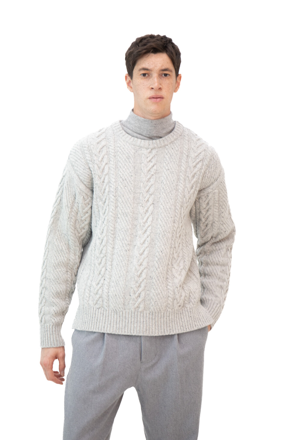 CABLE-KNIT CREW NECK SWEATER_GREY