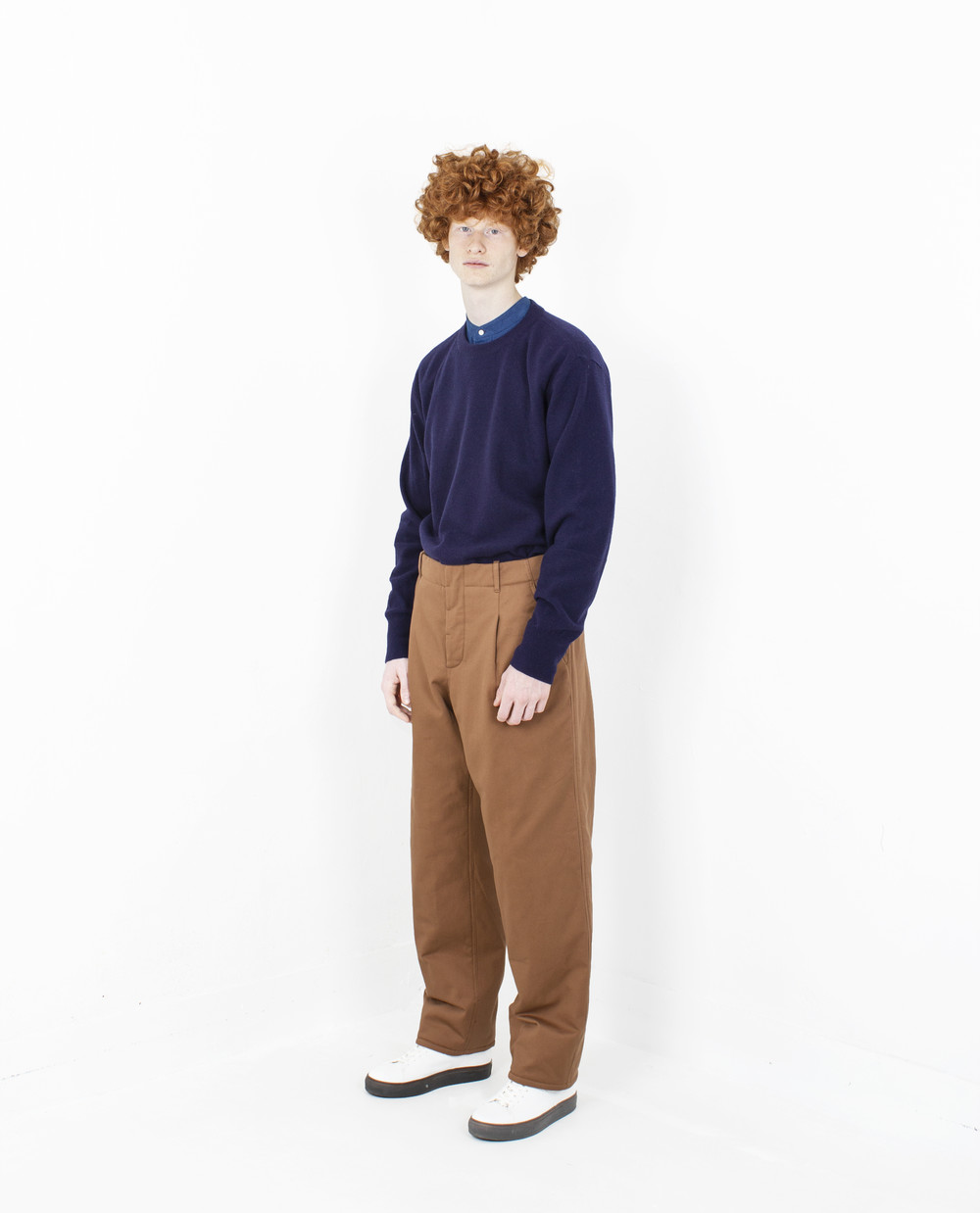 : COTTON TWILL PADDED TUCKED TROUSERS _CAMEL