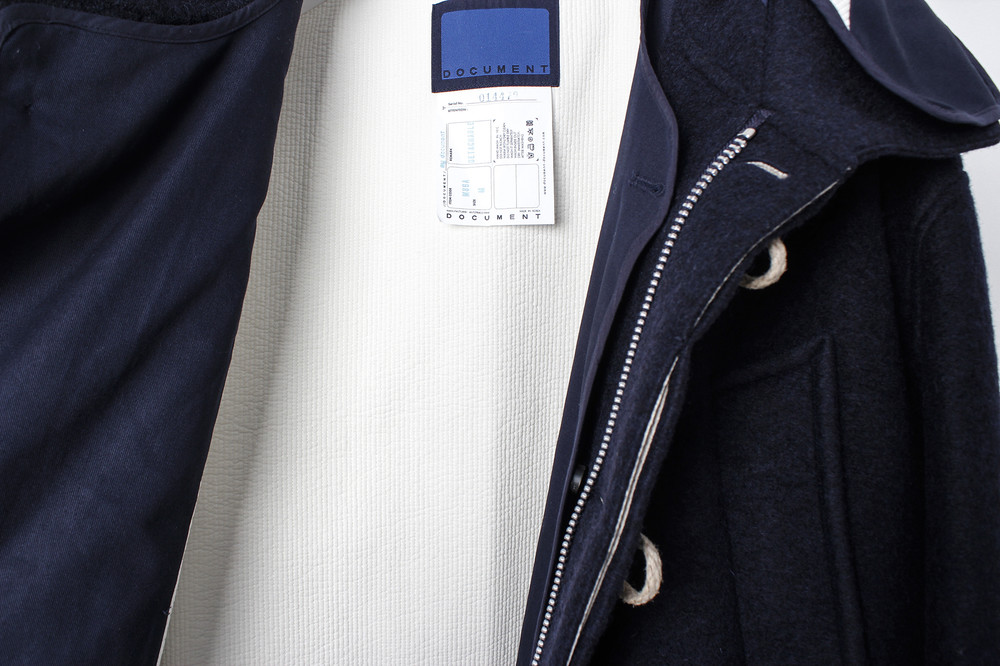 더플 코트의 고유성을 유지하며, 도큐먼트의 디테일이 녹아들어 도큐먼트 더플 코트를 선보입니다.