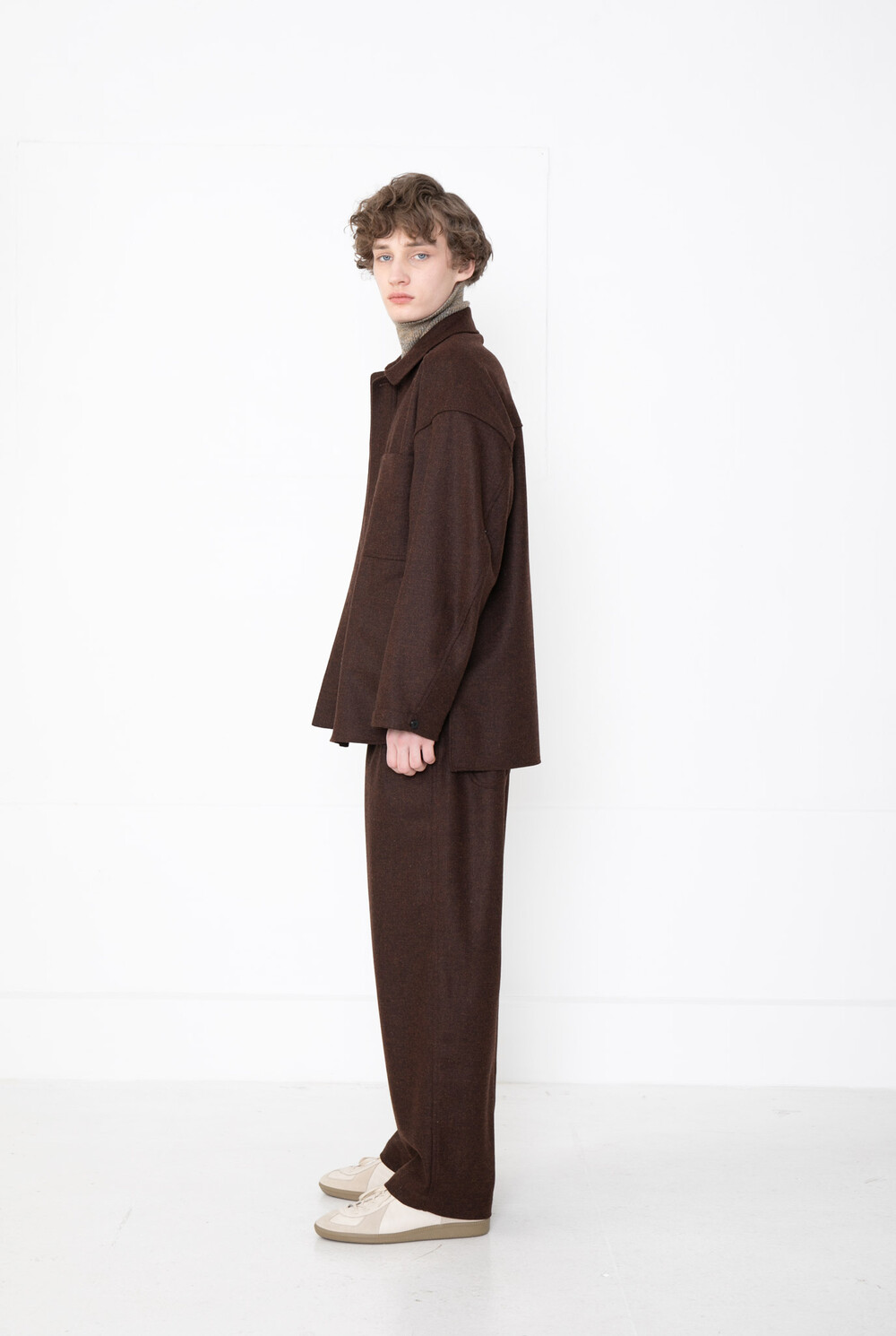 영국에서 만들어진 높은 퀄리티의 울 멜톤 원단으로 제작된 TUCKED TORUSERS 입니다.