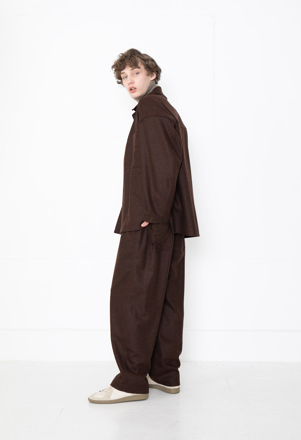 ENGLISH WOOL TUCKED TROUSERS_BROWN