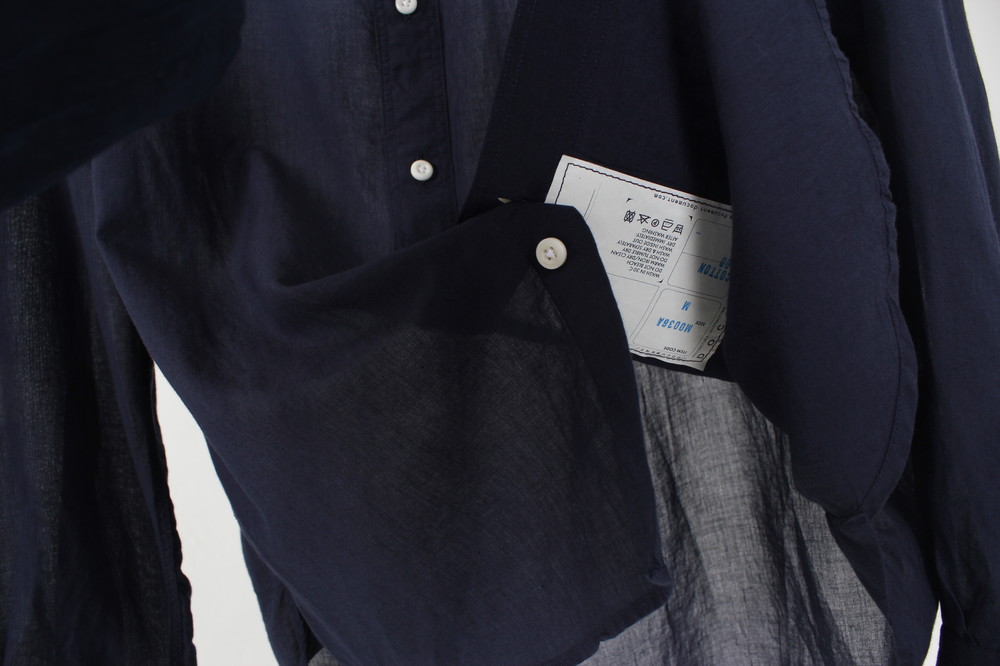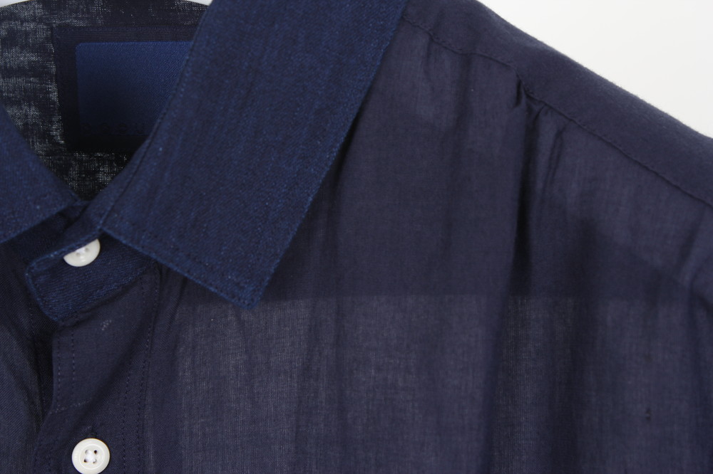 카라에 인디고 배색을 한 매력적인 셔츠입니다. 세탁을 하면 할수록 카라가 조금씩 색깔이 빠지는 경년변화의 매력을 느끼실수 있습니다. 반면 , 몸판의 원단은 얇은 원단으로 되어 있어서 긴팔 셔츠 이지만, 여름까지 즐겨 입으실 수 있습니다. 왼쪽 가슴에 포켓이 위치하고 있으며, 제품의 사진상으로 약간의 제품이 있지만, 실 착용시는 살이 비치거나 하지는 않습니다. 주로 여름철 이너용 셔츠롤 즐기시에 좋고, 단품으로 시원하게 입으시면, 리조트 룩으로도 활용 가능 합니다.