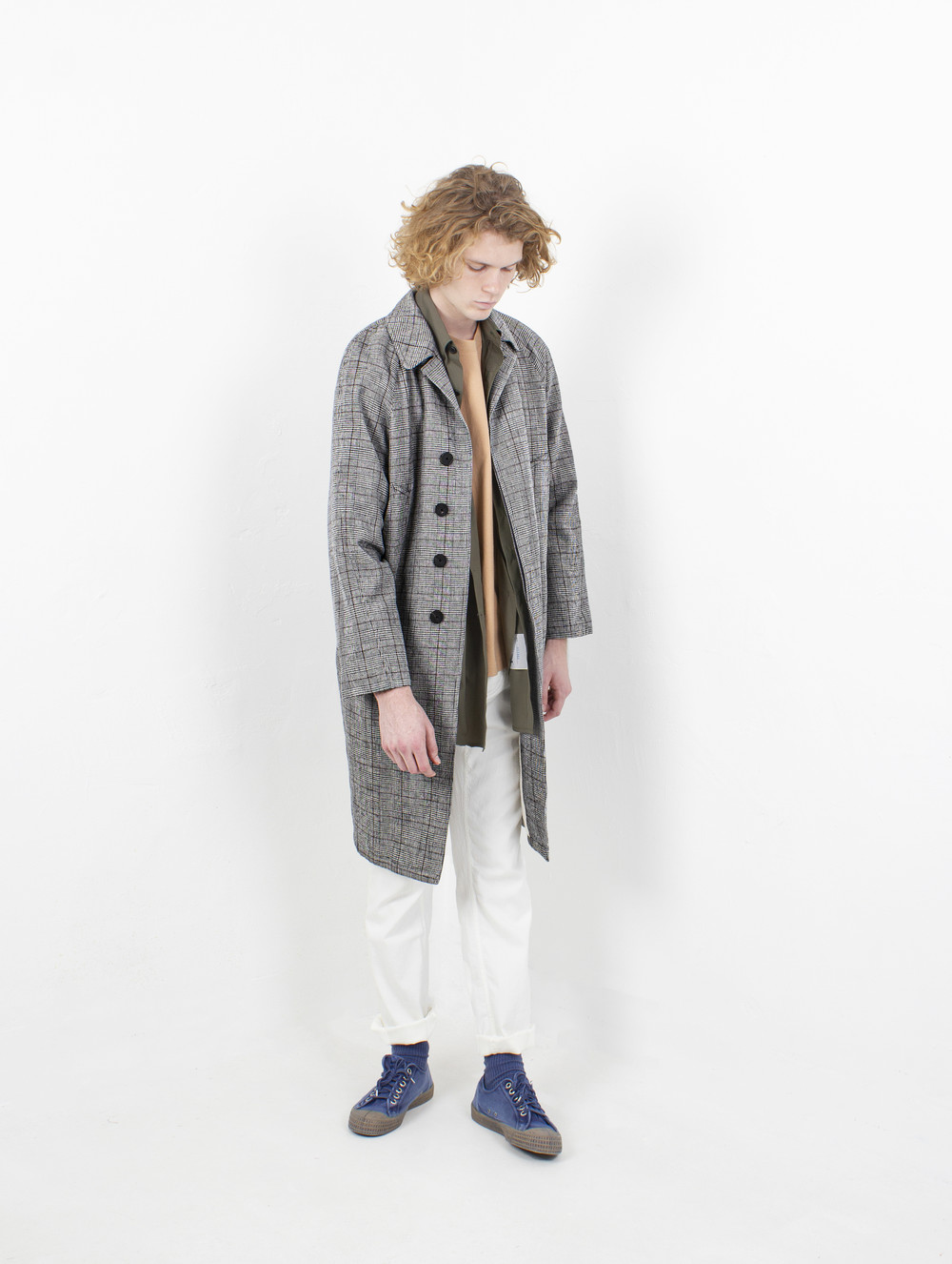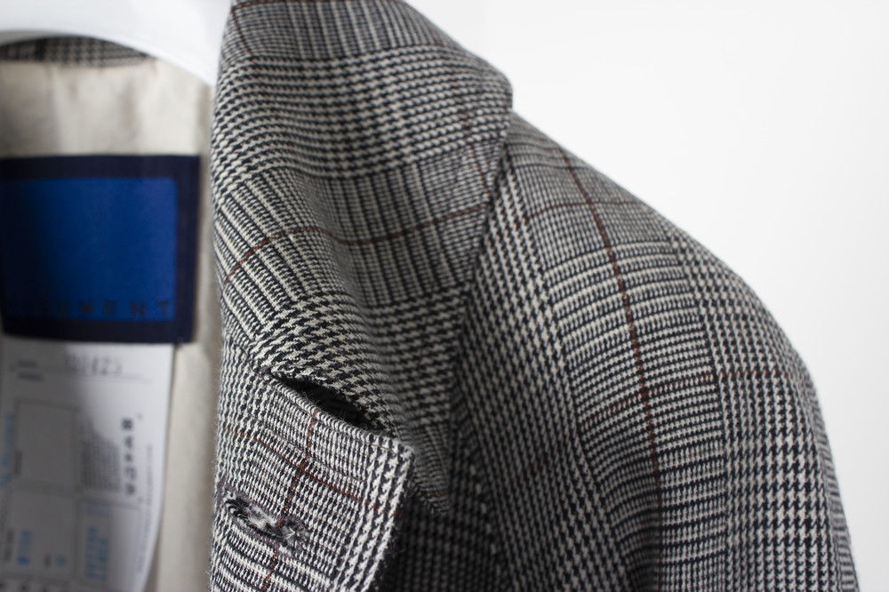 코튼과 린넨 소재로 이루어진 글렌 체크 조직의 원단으로 그레이 컬러 바탕에 브릭 컬러가 매력적으로 배색되어져 있습니다.