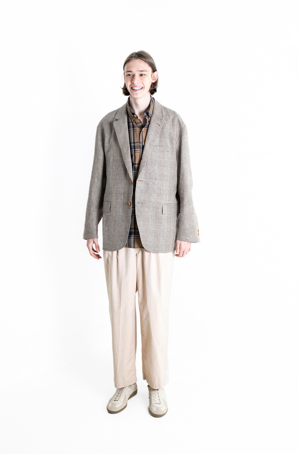 긴 기장감의 여유로운 힙에서 부터 자연스럽게 밑단까지 내려오면서, 허리 주름이 테일러드 되어 드레시한 뉘앙스로 접근합니다.