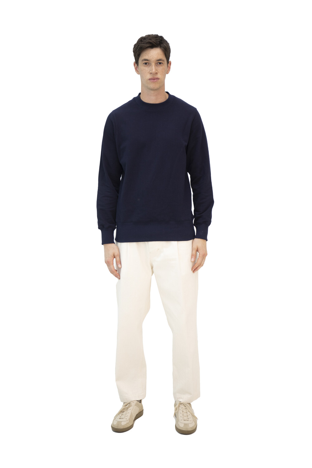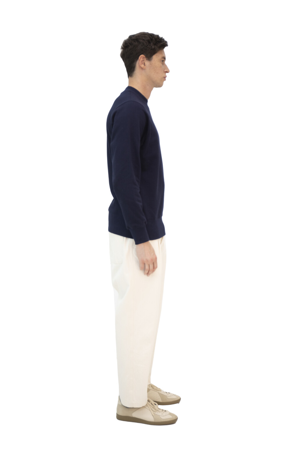잘 재단된 실루엣과 빈티지 스웻에서 영감을 받은 폭 넓은 립단과 굵직하게 재단된 네크라인,