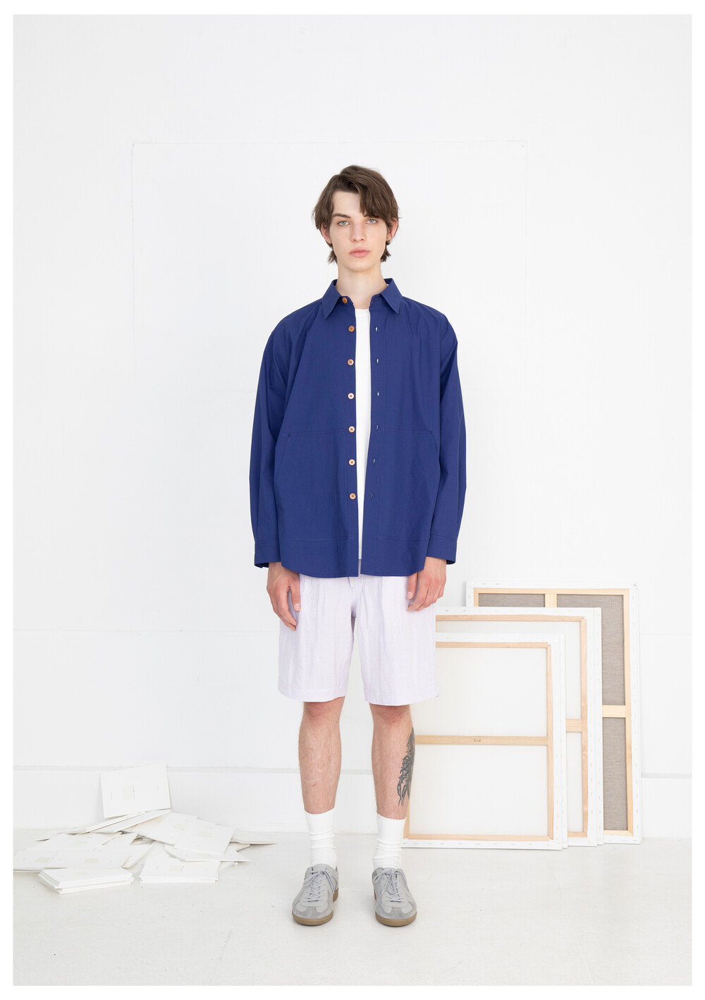 도큐먼트 셔츠 실루엣의 특징인 드롭되는 어깨와 등품 안쪽의 숨어있는 주름으로 활동성을 더하였습니다.