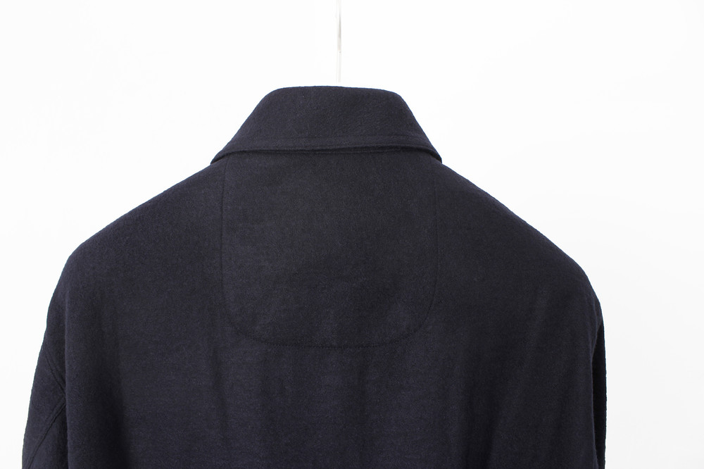프랑스 해군의 둥근 카라를 모티브로 하여 제작된 카라는 유려한 라인을 드러내며, 취향에 따리 세워 입을 수 있도록 제작 되었습니다.